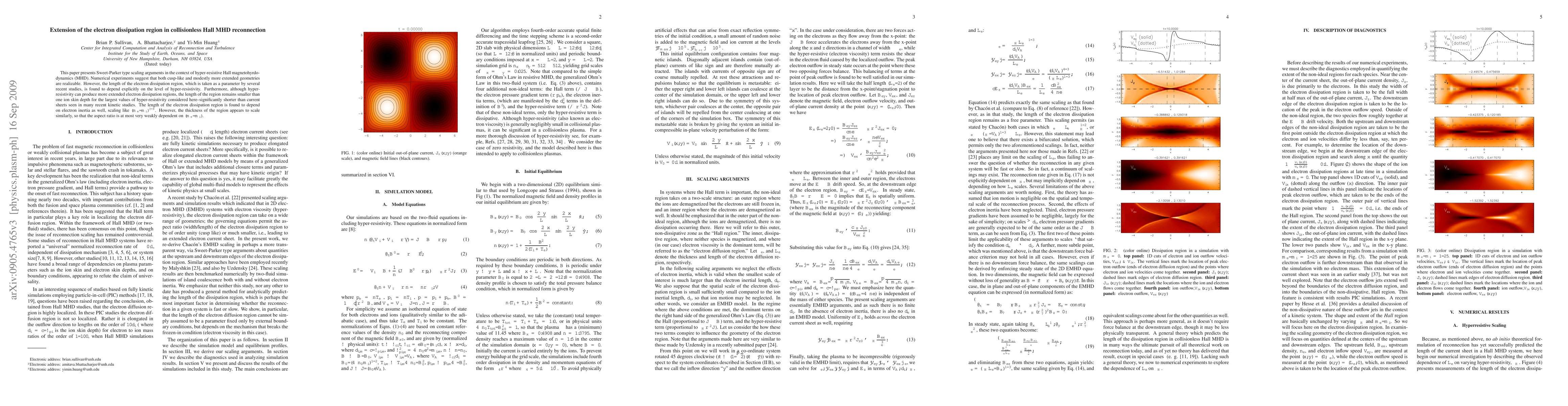 The study extends Sweet-Parker scaling arguments to hyper-resistive Hall MHD reconnection, finding that the length of the electron dissipation region depends on hyper-resistivity and electron inertia, with a maximum aspect ratio of weak dependence on mass ratio.