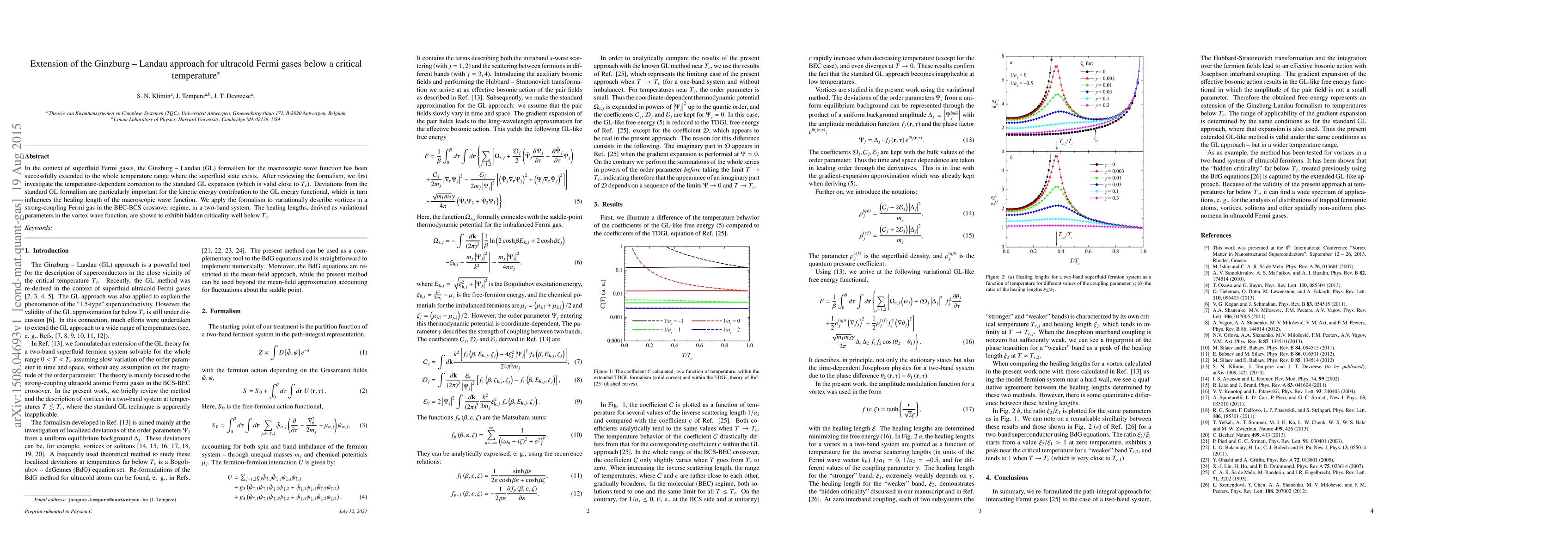 This paper extends the Ginzburg-Landau formalism to describe superfluid Fermi gases across the entire temperature range where superfluidity exists, focusing on temperature-dependent corrections to the standard expansion. It reveals hidden criticality in healing lengths below the critical temperature, particularly in the context of vortices in a strong-coupling Fermi gas in the BEC-BCS crossover regime.