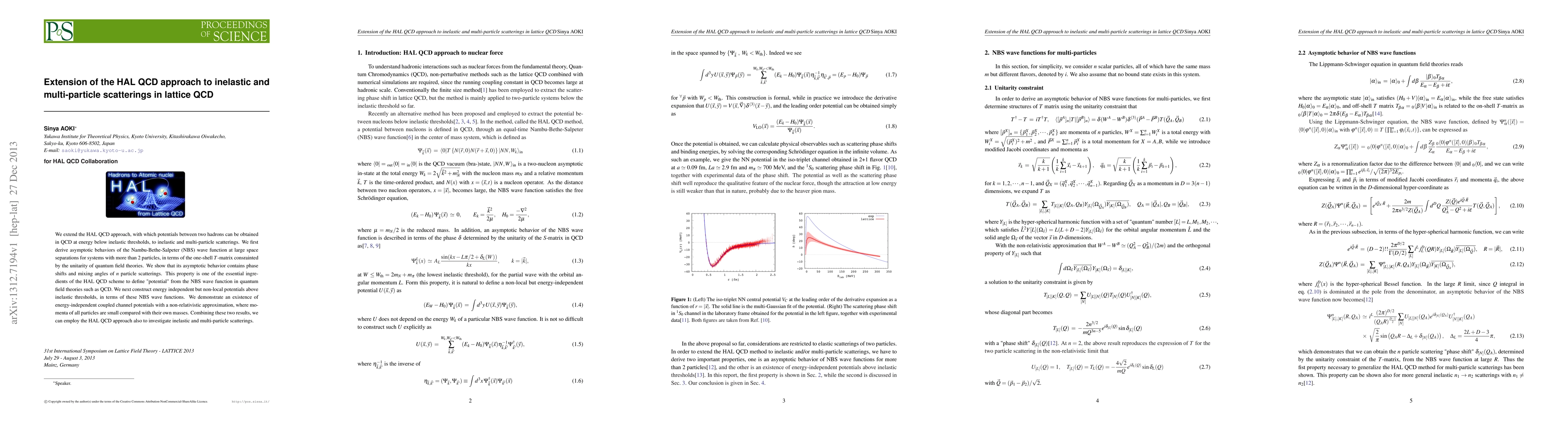 We extend the HAL QCD approach, with which potentials between two hadrons can be obtained in QCD at energy below inelastic thresholds, to inelastic and multi-particle scatterings. We first derive asymptotic behaviors of the Nambu-Bethe-Salpeter (NBS) wave function at large space separations for systems with more than 2 particles, in terms of the one-shell $T$-matrix consrainted by the unitarity of quantum field theories. We show that its asymptotic behavior contains phase shifts and mixing angles of $n$ particle scatterings. This property is one of the essential ingredients of the HAL QCD scheme to define "potential" from the NBS wave function in quantum field theories such as QCD. We next construct energy independent but non-local potentials above inelastic thresholds, in terms of these NBS wave functions. We demonstrate an existence of energy-independent coupled channel potentials with a non-relativistic approximation, where momenta of all particles are small compared with their own masses. Combining these two results, we can employ the HAL QCD approach also to investigate inelastic and multi-particle scatterings.