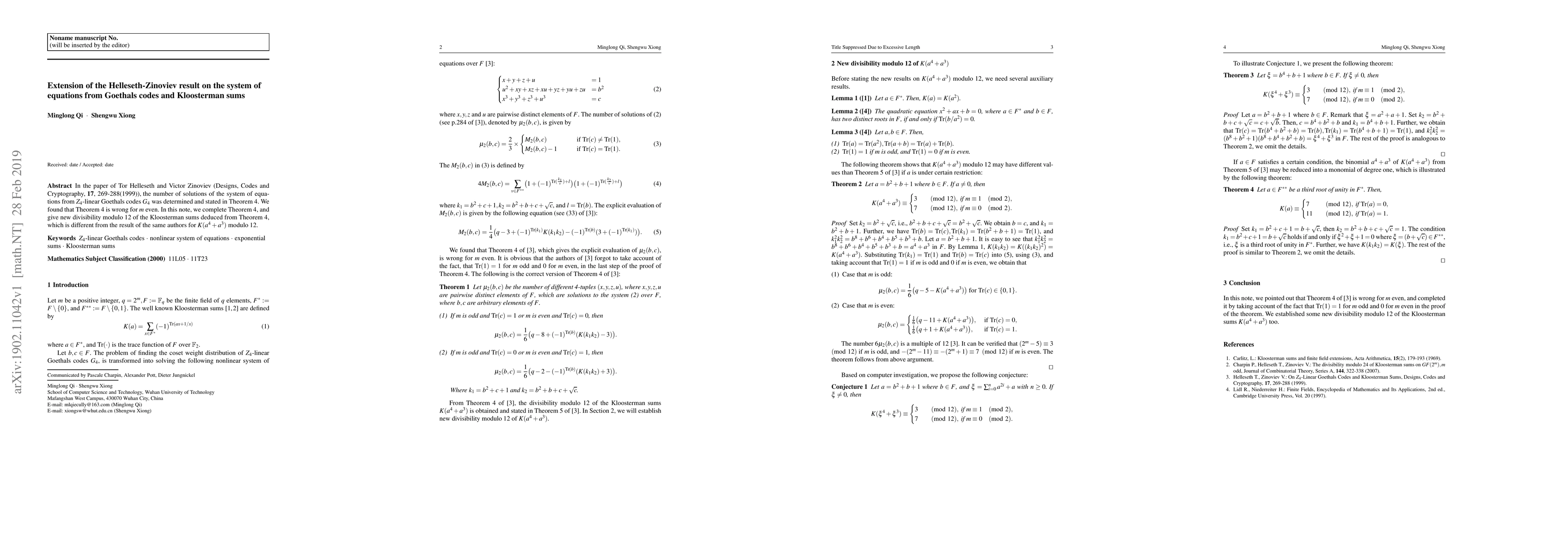 In the paper of Tor Helleseth and Victor Zinoviev (Designs, Codes and Cryptography, \textbf{17}, 269-288(1999)), the number of solutions of the system of equations from $ Z_{4} $-linear Goethals codes $ G_{4} $ was determined and stated in Theorem 4. We found that Theorem 4 is wrong for $ m $ even. In this note, we complete Theorem 4, and give new divisibility modulo 12 of the Kloosterman sums deduced from Theorem 4, which is different from the result of the same authors for $ K(a^{4}+a^{3}) $ modulo 12.