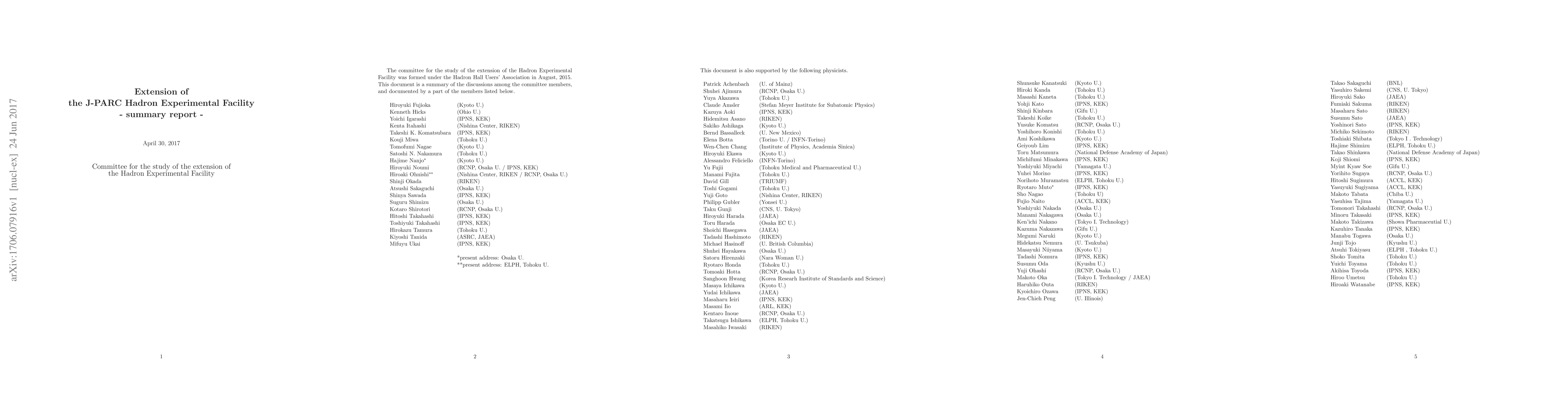The committee for the study of the extension of the Hadron Experimental Facility was formed under the Hadron Hall Users' Association in August, 2015. This document is a summary of the discussions among the committee members, and documented by a part of the members listed below.