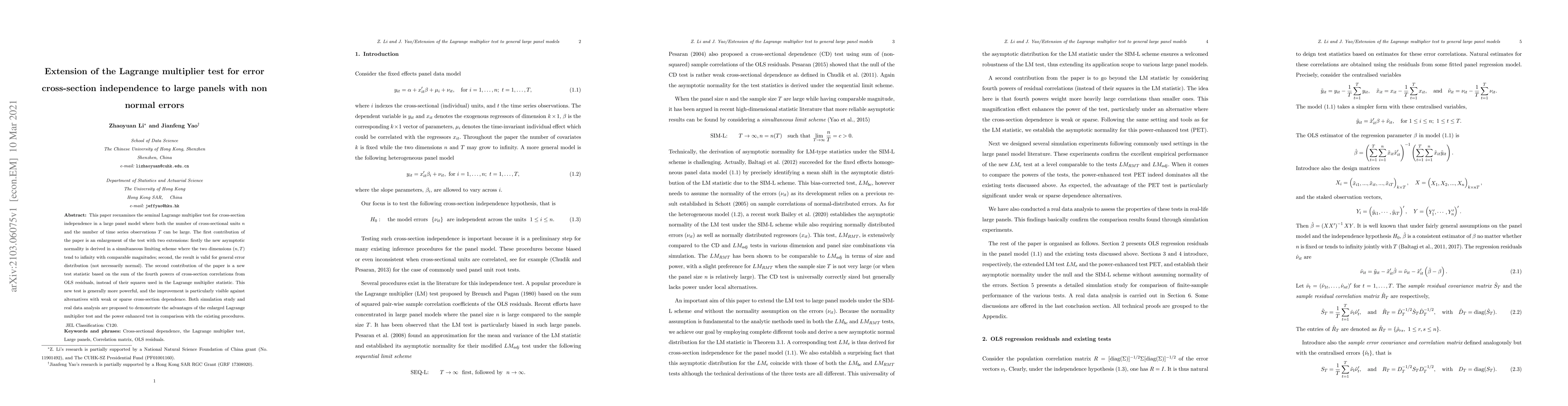 Zhaoyuan Li, Jianfeng Yao, Zhenhong Huang
