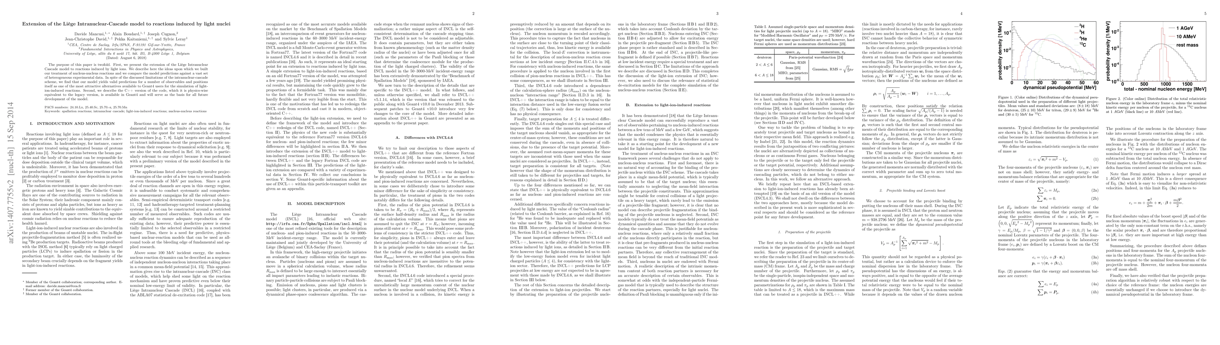 The purpose of this paper is twofold. First, we present the extension of the Li\`ege Intranuclear Cascade model to reactions induced by light ions. Second, we describe the C++ version of the code, which it is physics-wise equivalent to the legacy version, is available in Geant4 and will serve as the basis for all future development of the model. We describe the ideas upon which we built our treatment of nucleus-nucleus reactions and we compare the model predictions against a vast set of heterogeneous experimental data. In spite of the discussed limitations of the intranuclear-cascade scheme, we find that our model yields valid predictions for a number of observables and positions itself as one of the most attractive alternatives available to Geant4 users for the simulation of light-ion-induced reactions.
