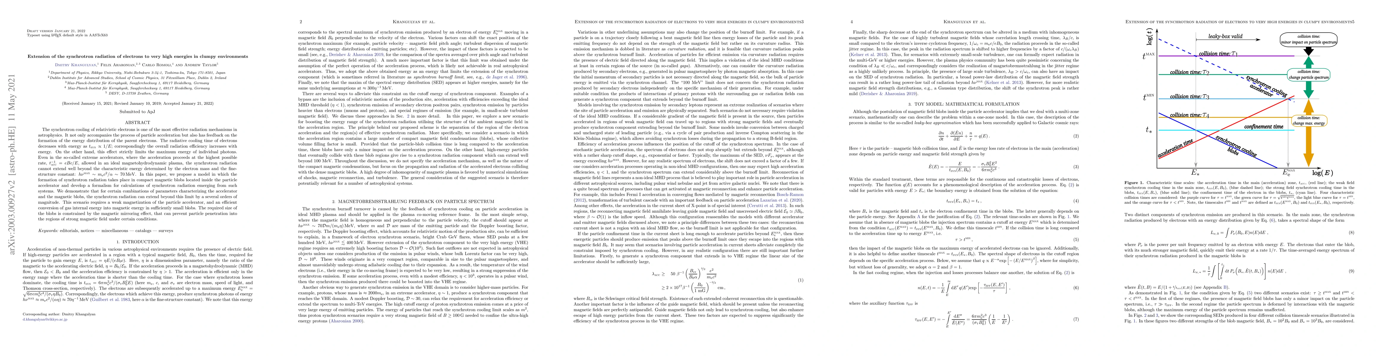 This paper proposes a model where synchrotron radiation extends beyond typical limits in clumpy environments, suggesting that compact magnetic blobs within particle accelerators can produce radiation at much higher energies than previously thought, provided the accelerator has a weak magnetization and efficient magnetic energy conversion.