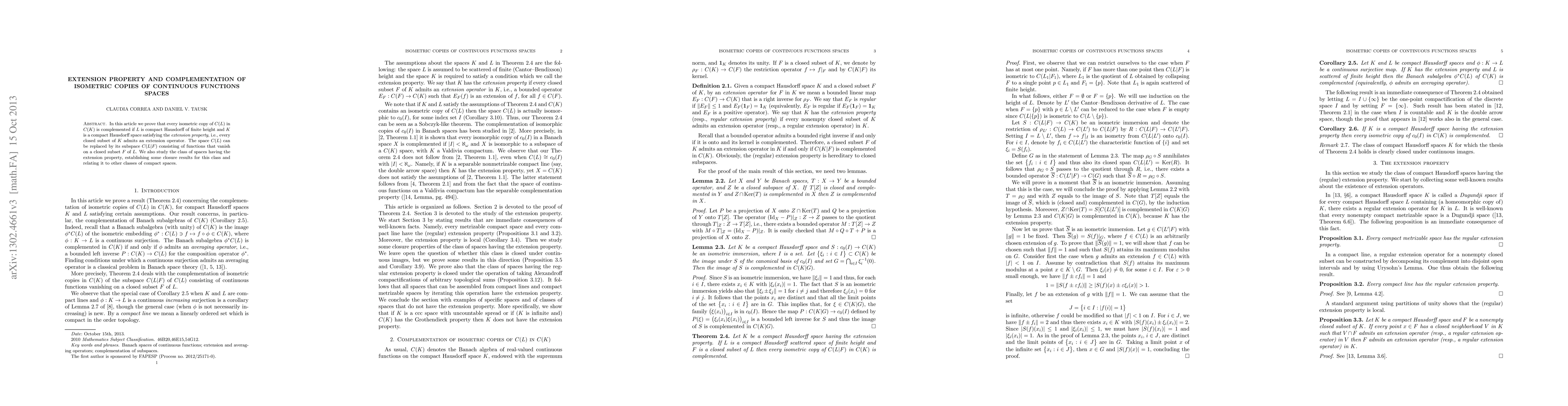 Researchers prove that isometric copies of certain function spaces can be complemented in others if the target space satisfies an extension property, with implications for understanding various classes of compact spaces.