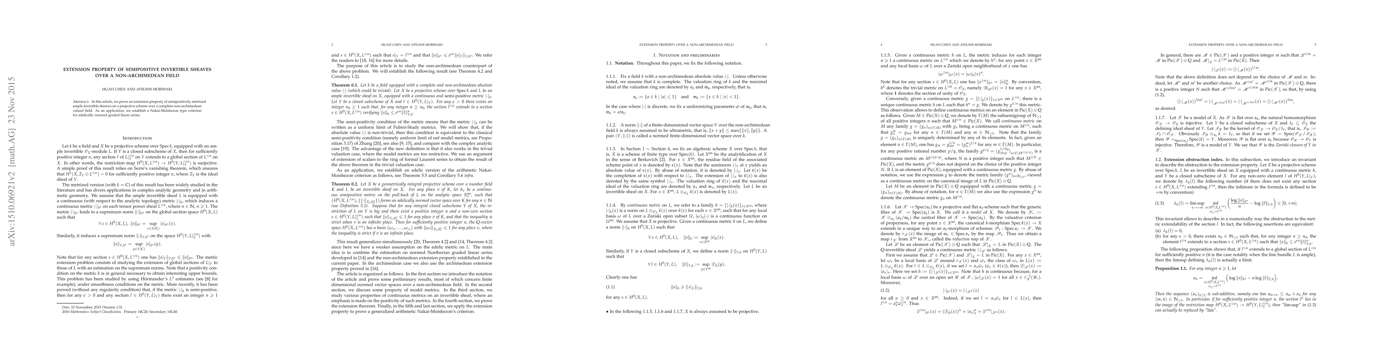 Summary: This paper proves the extension property of semipositively metrized ample invertible sheaves over a projective scheme over a complete non-archimedean field, and applies this to establish a Nakai-Moishezon type criterion for adelically normed graded linear series.