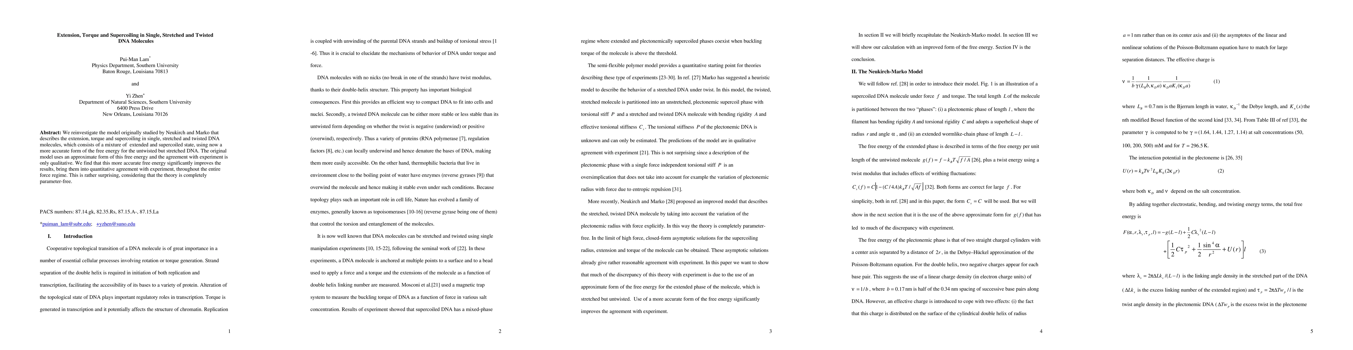 This paper refines the Neukirch and Marko model to better describe the extension, torque, and supercoiling in stretched and twisted DNA, using a more precise free energy function. The improved model now quantitatively aligns with experimental data across various force regimes, despite being parameter-free.