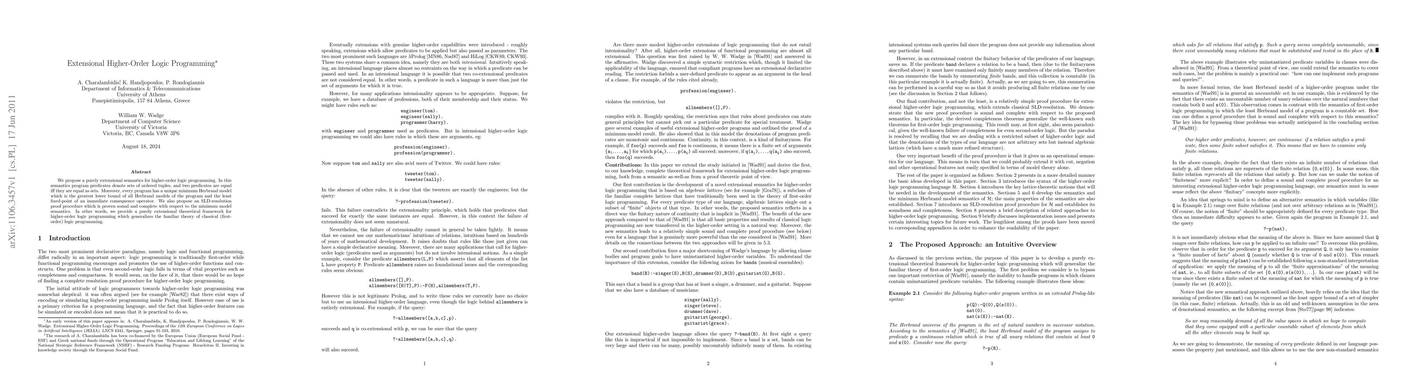 This paper introduces an extensional semantics for higher-order logic programming where predicates represent sets of tuples, emphasizing equality as set equality. It presents a unique minimum Herbrand model and a sound, complete SLD-resolution proof system, offering a theoretical framework that generalizes classical first-order logic programming.