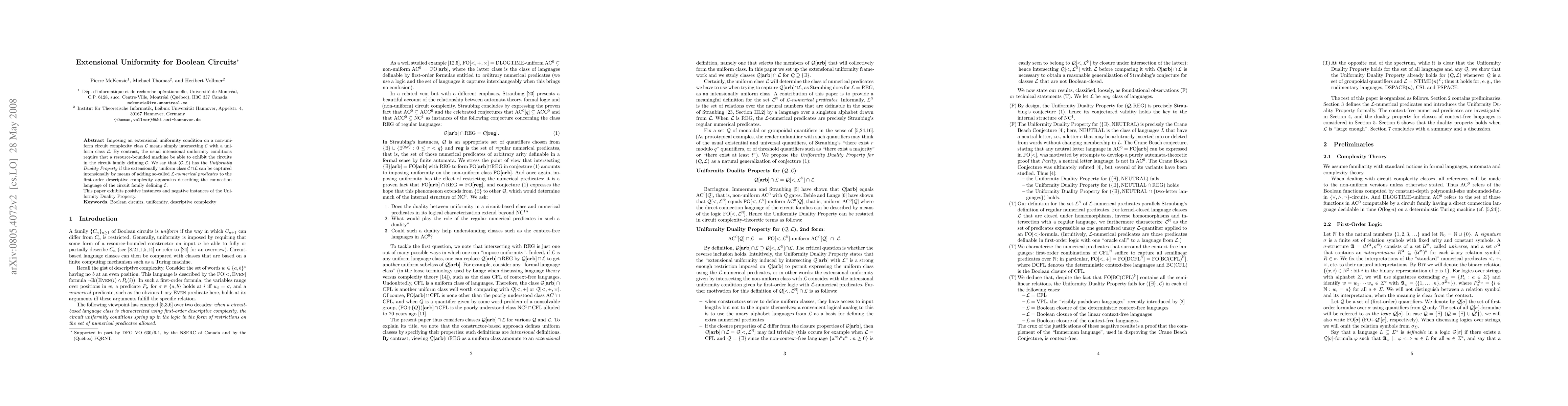 This paper explores the 'Uniformity Duality Property' between non-uniform circuit complexity class C and uniform class L, finding instances where this property holds and where it doesn't. It introduces 'L-numerical predicates' to describe the connection language of C intensionally when C ∩ L is extensionally uniform.