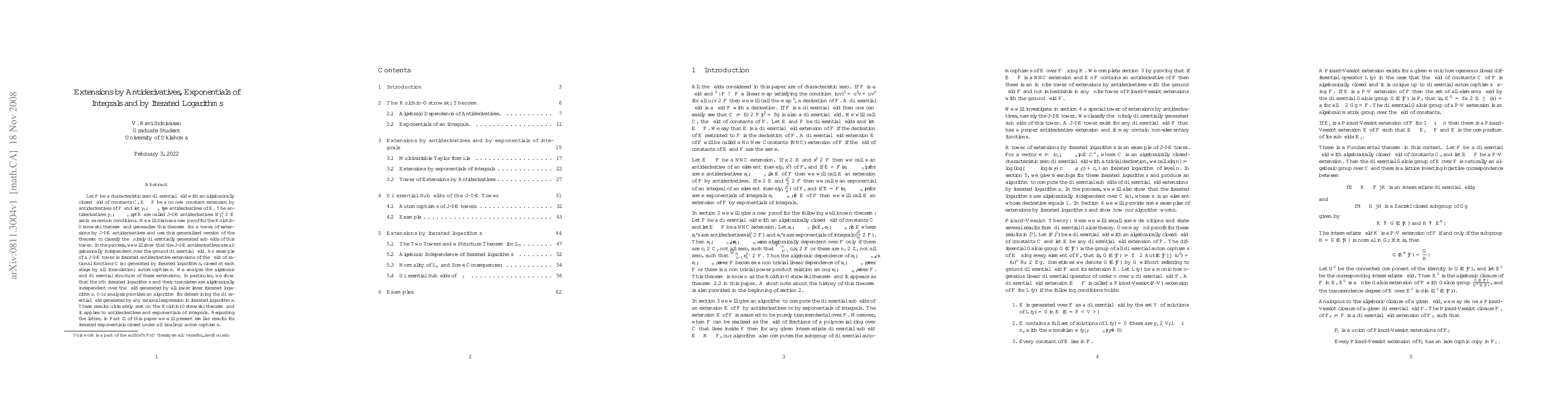This paper introduces J-I-E antiderivatives in differential fields, proving a generalized Kolchin-Ostrowski theorem for towers of such extensions. It classifies finitely differentially generated subfields and shows algebraic independence of these antiderivatives, with a focus on iterated logarithms and their normality.