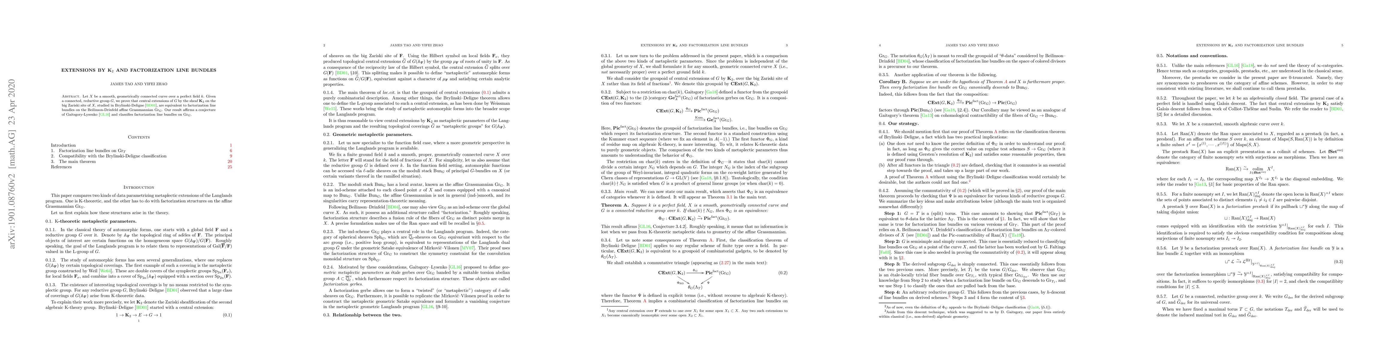 The paper shows that central extensions of a connected reductive group $G$ by the sheaf $f K_2$ on a curve $X$ are equivalent to factorization line bundles on the Beilinson-Drinfeld affine Grassmannian $ ext{Gr}_G$, classifying a conjecture and affirming its validity.