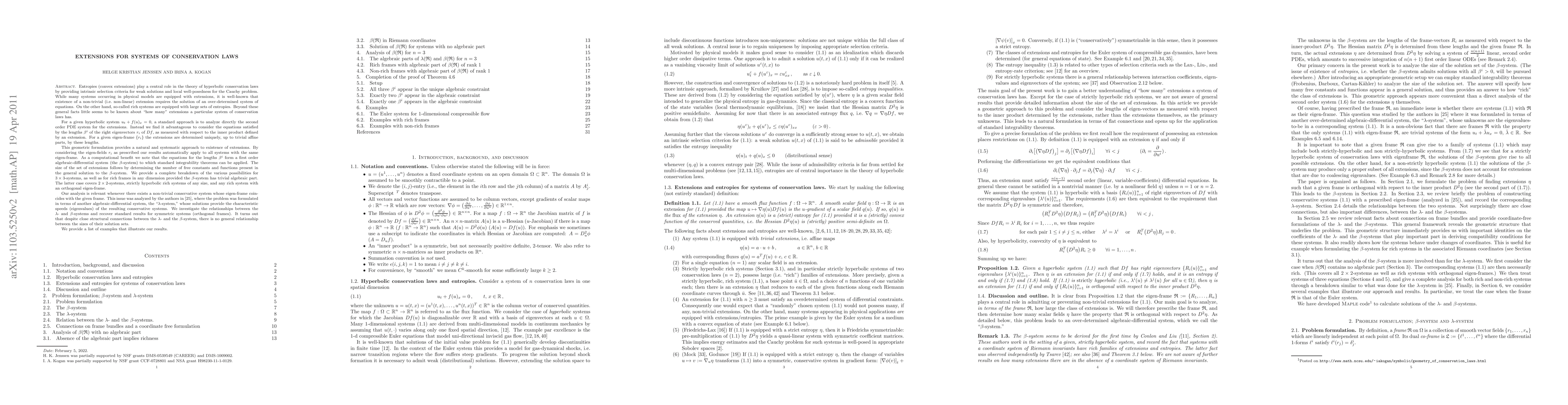 Extensions (entropies) play a central role in the theory of hyperbolic conservation laws by providing intrinsic selection criteria for weak solutions. For a given hyperbolic system u_t+f(u)_x=0, a standard approach is to analyze directly the second order PDE system for the extensions. Instead we find it advantageous to consider the equations satisfied by the lengths beta^i of the right eigenvectors r_i the Jacobian matrix Df, as measured with respect to the inner product defined by an extension. Our geometric formulation provides a natural and systematic approach to existence of extensions. By prescribing the eigen-fields r_i our results automatically apply to all systems with the same eigen-frame. The equations for the lengths beta^i form a first order algebraic-differential system (the beta-system) to which standard integrability theorems can be applied. The size of the set of extensions follows by determining the number of free constants and functions present in the general solution to the beta-system. We provide a complete breakdown of the various possibilities for systems of three equations, as well as for rich hyperbolic systems of any size.