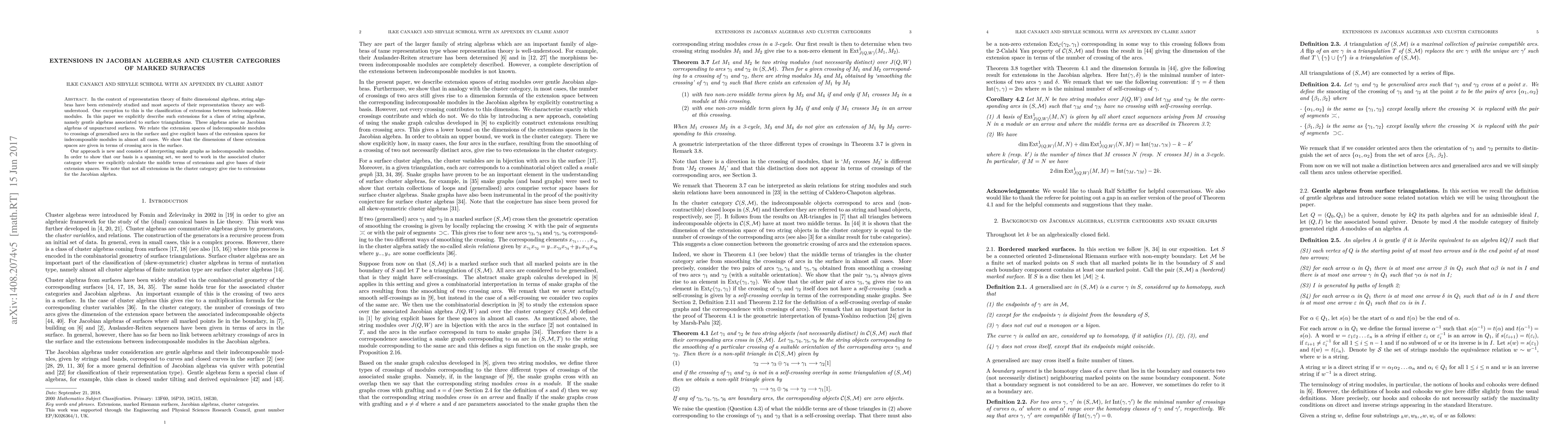 In the context of representation theory of finite dimensional algebras, string algebras have been extensively studied and most aspects of their representation theory are well-understood. One exception to this is the classification of extensions between indecomposable modules. In this paper we explicitly describe such extensions for a class of string algebras, namely gentle algebras associated to surface triangulations. These algebras arise as Jacobian algebras of unpunctured surfaces. We relate the extension spaces of indecomposable modules to crossings of arcs in the surface and give explicit bases of the extension spaces for indecomposable modules in almost all cases. We show that the dimensions of these extension spaces are given in terms of crossing arcs in the surface. Our approach is new and consists of interpreting snake graphs as indecomposable modules. In order to show that our basis is a spanning set, we need to work in the associated cluster category where we explicitly calculate the middle terms of extensions and give bases of their extension spaces. We note that not all extensions in the cluster category give rise to extensions for the Jacobian algebra.