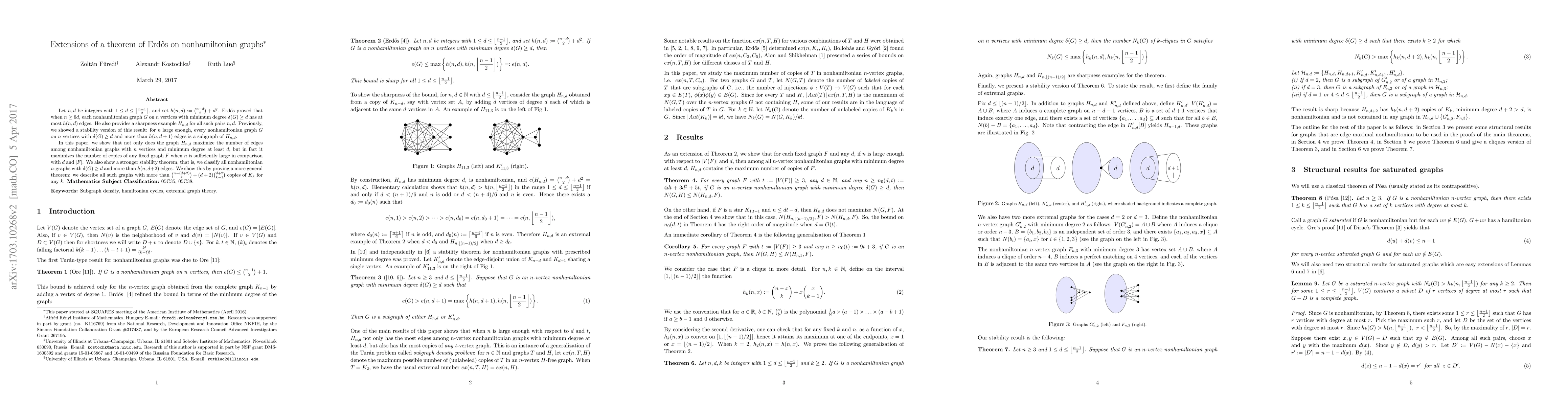 This paper extends Erdős' theorem on nonhamiltonian graphs by proving that the graph $H_{n,d}$ maximizes the number of edges and copies of any fixed graph $F$ when $n$ is sufficiently large relative to $d$ and $|F|$. It also presents a stronger stability theorem classifying nonhamiltonian graphs with minimum degree at least $d$ and more than $h(n,d+2)$ edges.