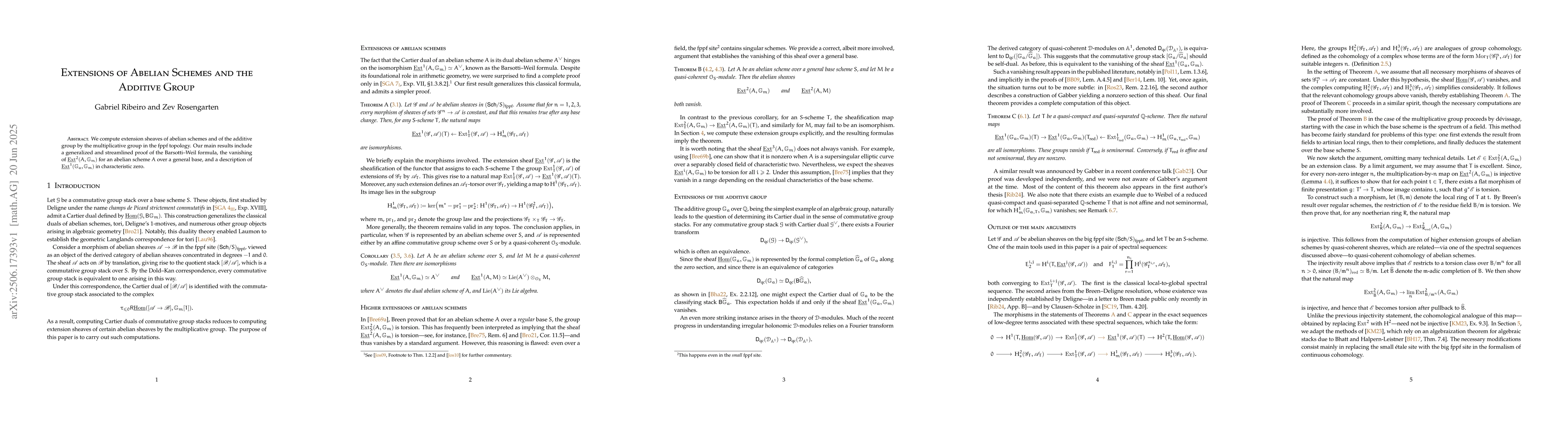 We compute extension sheaves of abelian schemes and of the additive group by the multiplicative group in the fppf topology. Our main results include a generalized and streamlined proof of the Barsotti--Weil formula, the vanishing of $\underline{\operatorname{Ext}}^2(A,\mathbb{G}_m)$ for an abelian scheme $A$ over a general base, and a description of $\underline{\operatorname{Ext}}^1(\mathbb{G}_a,\mathbb{G}_m)$ in characteristic zero.