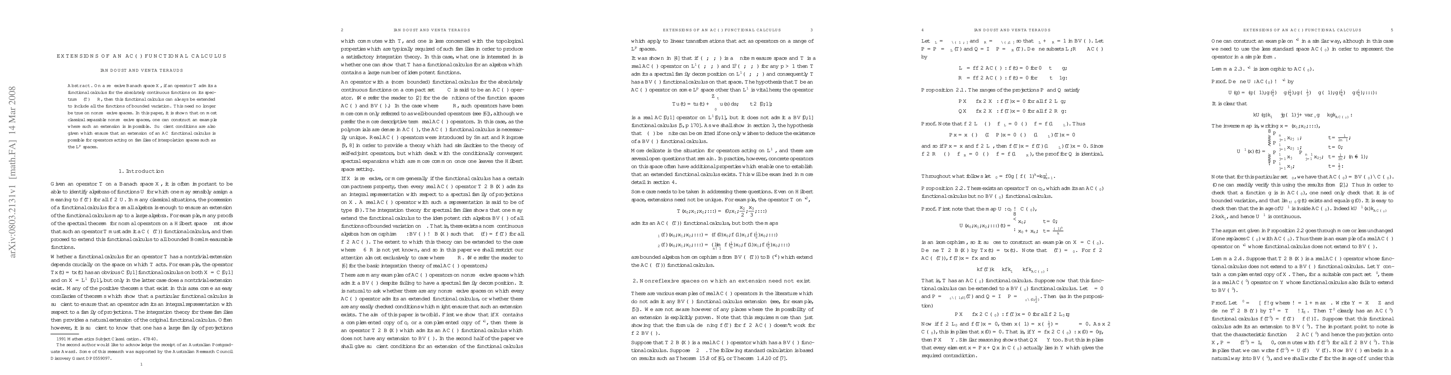 This paper explores the extension of an $AC(\sigma)$ functional calculus on reflexive Banach spaces, showing that it can include all functions of bounded variation. It demonstrates that on most classical separable nonreflexive spaces, such extensions are often impossible, while providing conditions for successful extensions in $L^p$ spaces.