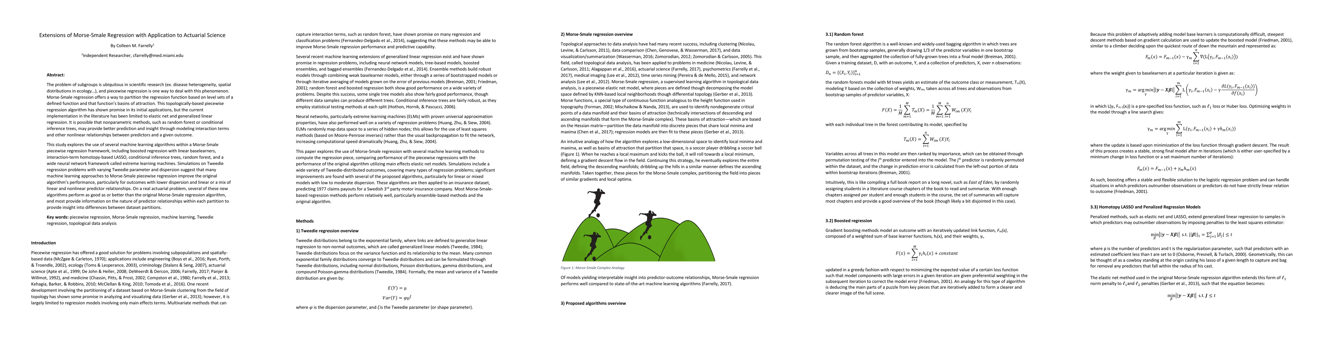 This paper extends Morse-Smale regression by integrating various machine learning algorithms, showing improved performance in simulations and real actuarial problems, particularly for outcomes with linear or mixed linear-nonlinear predictor relationships. The new methods provide better insights into the nature of predictor interactions within partitions.