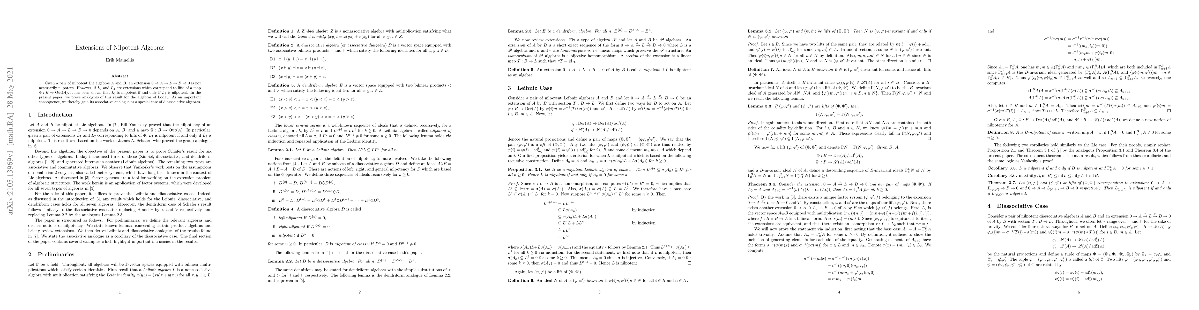 This paper explores extensions of nilpotent Lie algebras and establishes that if two extensions correspond to lifts of a map involving the outer automorphism group of one algebra, they are both nilpotent if at least one is. It extends these results to Loday algebras and their associative analogues.