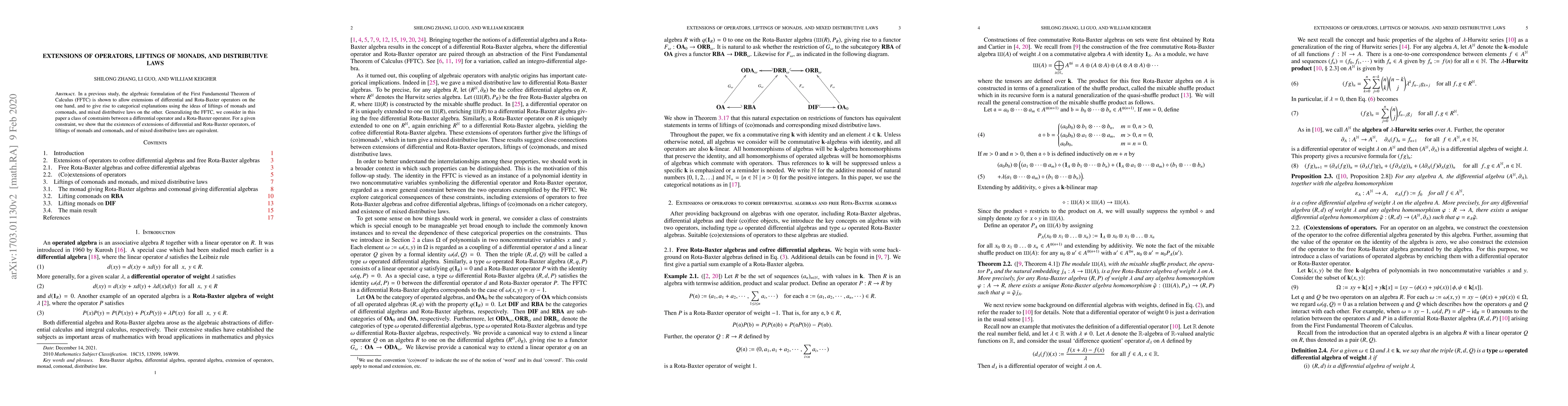 This paper generalizes the algebraic formulation of the First Fundamental Theorem of Calculus to explore relationships between differential and Rota-Baxter operators, demonstrating that extensions of these operators, liftings of monads and comonads, and mixed distributive laws are all equivalent under certain constraints.