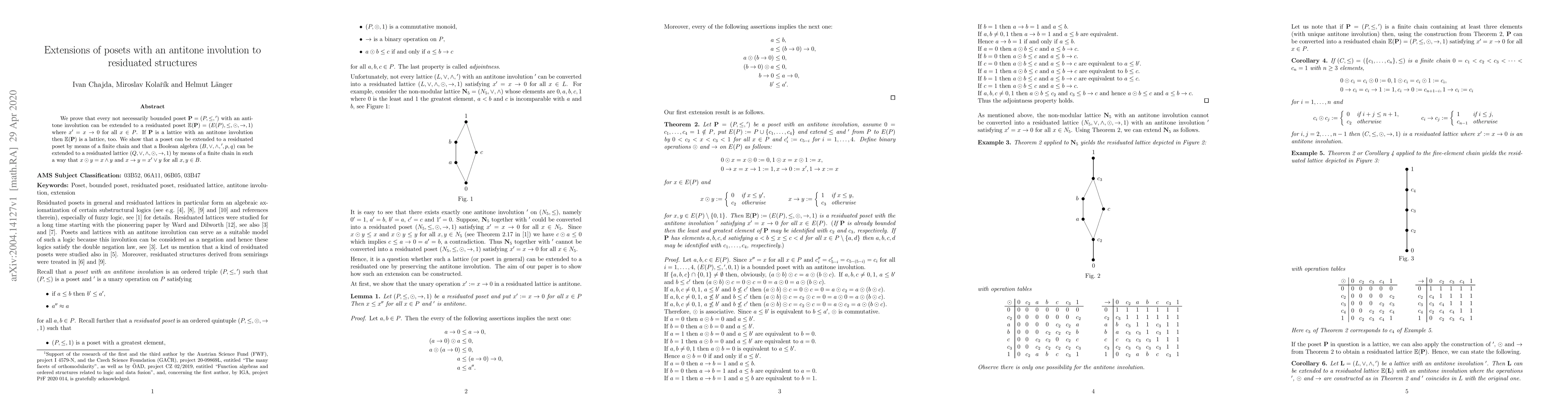 We prove that every not necessarily bounded poset P=(P,\le,') with an antitone involution can be extended to a residuated poset E(P)=(E(P),\le,\odot,\rightarrow,1) where x'=x\rightarrow0 for all x\in P. If P is a lattice with an antitone involution then E(P) is a lattice, too. We show that a poset can be extended to a residuated poset by means of a finite chain and that a Boolean algebra (B,\vee,\wedge,',p,q) can be extended to a residuated lattice (Q,\vee,\wedge,\odot,\rightarrow,1) by means of a finite chain in such a way that x\odot y=x\wedge y and x\rightarrow y=x'\vee y for all x,y\in B.