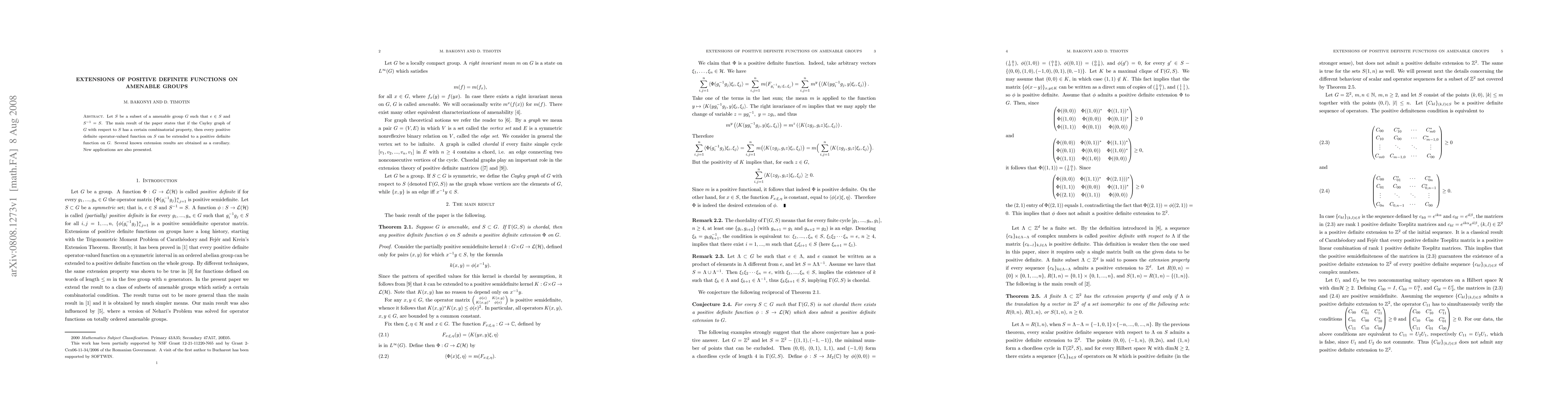Research extends positive definite functions on amenable groups to larger sets based on combinatorial properties of their Cayley graphs.