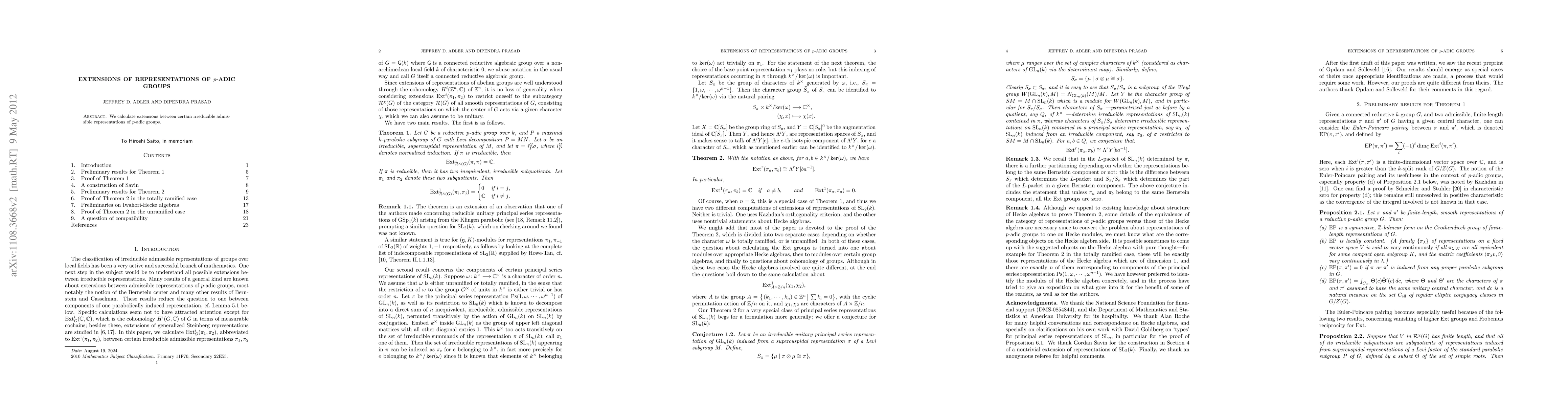 This paper calculates extensions between specific irreducible admissible representations of p-adic groups, contributing to the understanding of their structure and relationships. The results provide deeper insight into the classification of such representations.