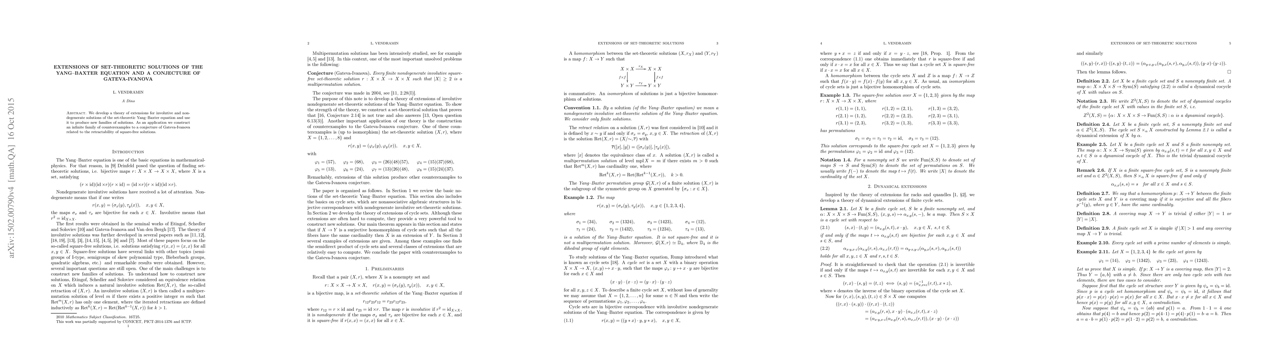 This paper introduces a new theoretical framework for extending set-theoretic solutions of the Yang-Baxter equation and utilizes this framework to generate novel solution families. It also disproves a conjecture by Gateva-Ivanova regarding the retractability of square-free solutions.