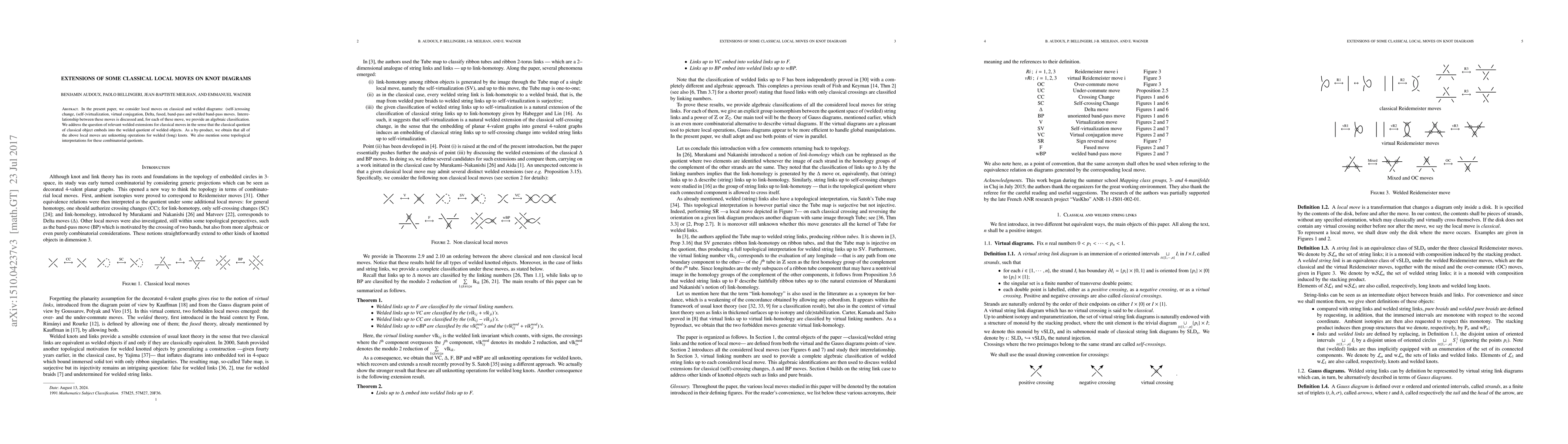 In the present paper, we consider local moves on classical and welded diagrams: (self-)crossing change, (self-)virtualization, virtual conjugation, Delta, fused, band-pass and welded band-pass moves. Interrelationship between these moves is discussed and, for each of these move, we provide an algebraic classification. We address the question of relevant welded extensions for classical moves in the sense that the classical quotient of classical object embeds into the welded quotient of welded objects. As a by-product, we obtain that all of the above local moves are unknotting operations for welded (long) knots. We also mention some topological interpretations for these combinatorial quotients.