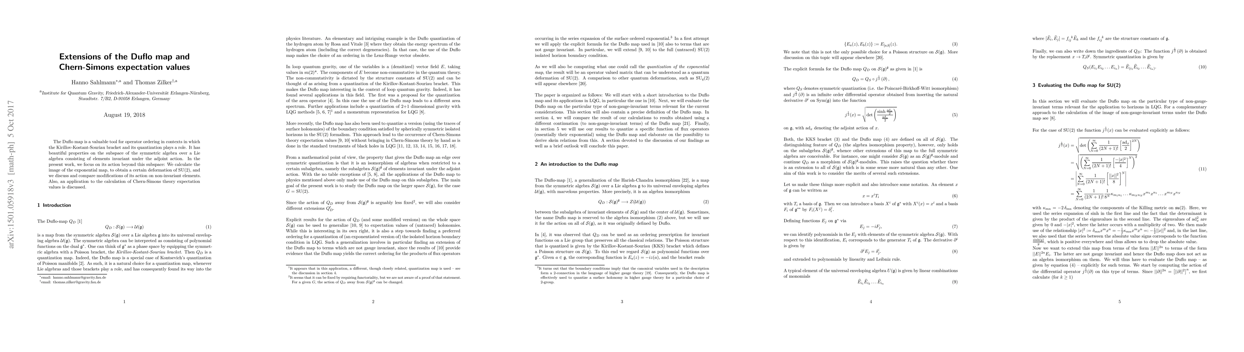 This paper explores extensions of the Duflo map to the entire symmetric algebra and applies these extensions to compute Chern-Simons theory expectation values, enhancing the utility of the Duflo map beyond its original invariant subspace definition.