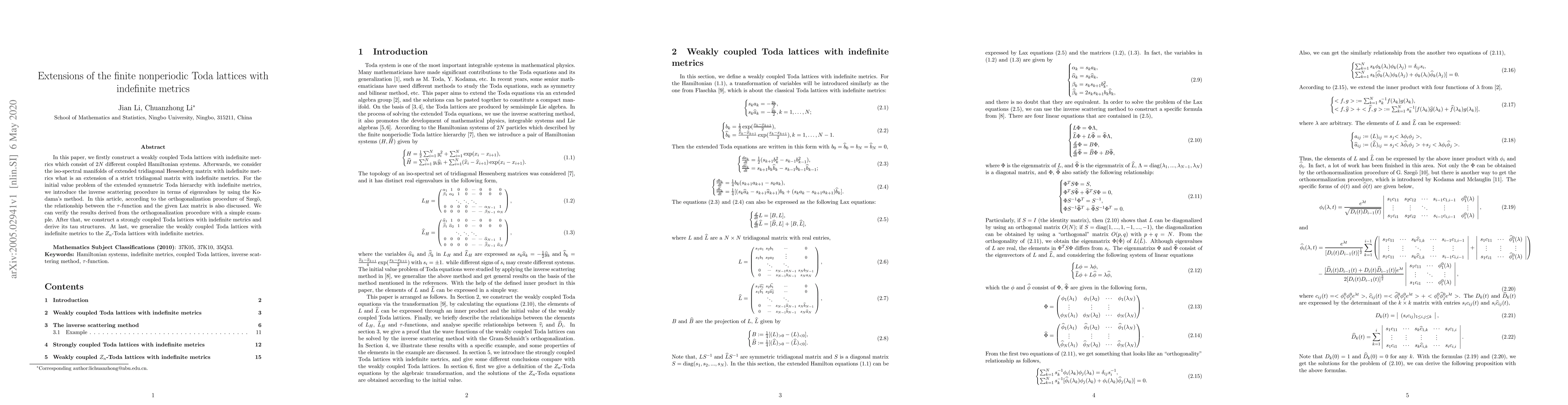 This paper constructs weakly and strongly coupled Toda lattices with indefinite metrics, exploring their iso-spectral manifolds and inverse scattering methods. It also generalizes these systems to $Z_{n}$-Toda lattices and discusses the relationship between $\tau$-functions and Lax matrices using orthogonalization procedures.