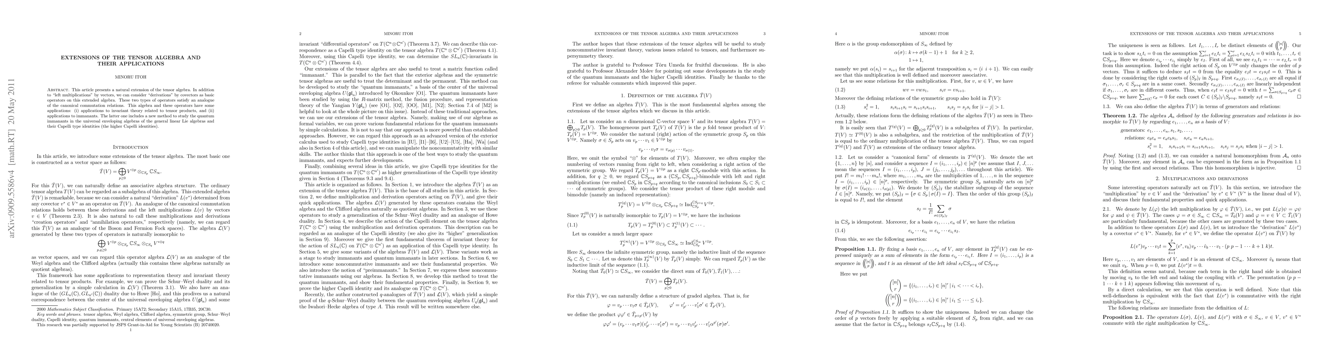 This article presents a natural extension of the tensor algebra. In addition to "left multiplications" by vectors, we can consider "derivations" by covectors as basic operators on this extended algebra. These two types of operators satisfy an analogue of the canonical commutation relations. This algebra and these operators have some applications: (i) applications to invariant theory related to tensor products, and (ii) applications to immanants. The latter one includes a new method to study the quantum immanants in the universal enveloping algebras of the general linear Lie algebras and their Capelli type identities (the higher Capelli identities).