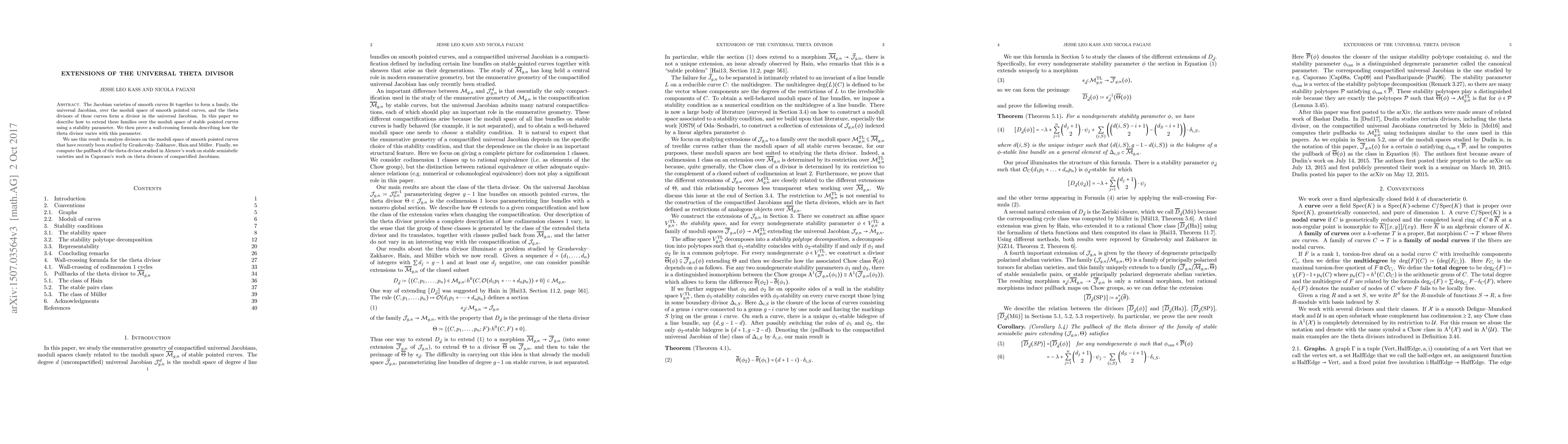 The Jacobian varieties of smooth curves fit together to form a family, the universal Jacobian, over the moduli space of smooth marked curves, and the theta divisors of these curves form a divisor in the universal Jacobian. In this paper we describe how to extend these families over the moduli space of stable marked curves (or rather an open subset thereof) using a stability parameter. We then prove a wall-crossing formula describing how the theta divisor varies with the stability parameter. We use that result to analyze a divisor on the moduli space of smooth marked curves that has recently been studied by Grushevsky-Zakharov, Hain and M\"uller. In particular, we compute the pullback of the theta divisor studied in Alexeev's work on stable abelic varieties and in Caporaso's work on theta divisors of compactified Jacobians.