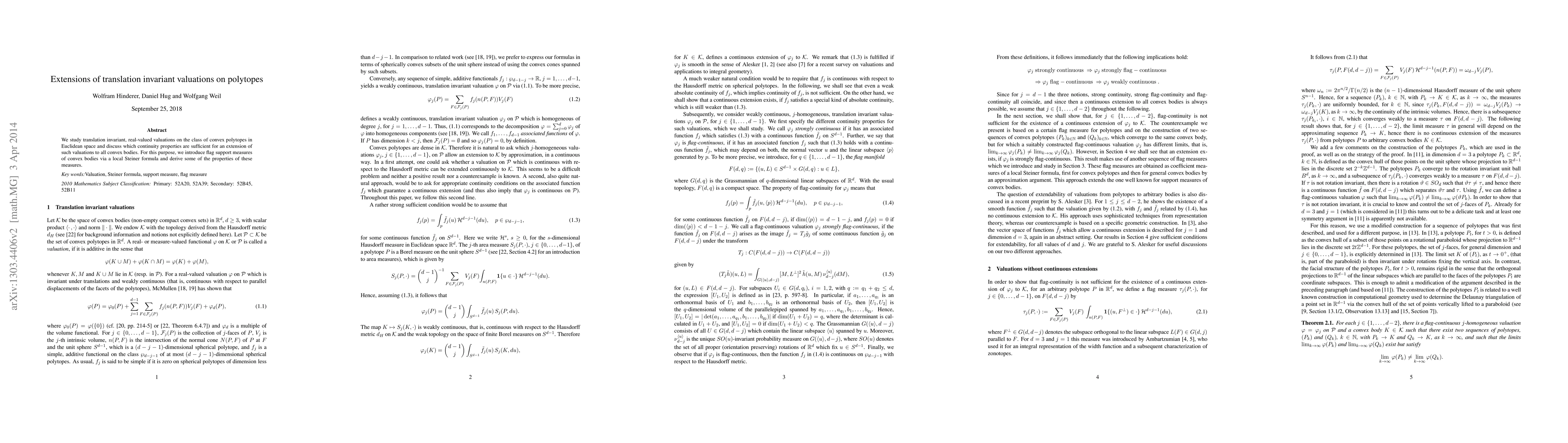 The paper studies translation-invariant valuations on convex polytopes, introducing flag support measures via a local Steiner formula to explore continuity properties for extension to all convex bodies.