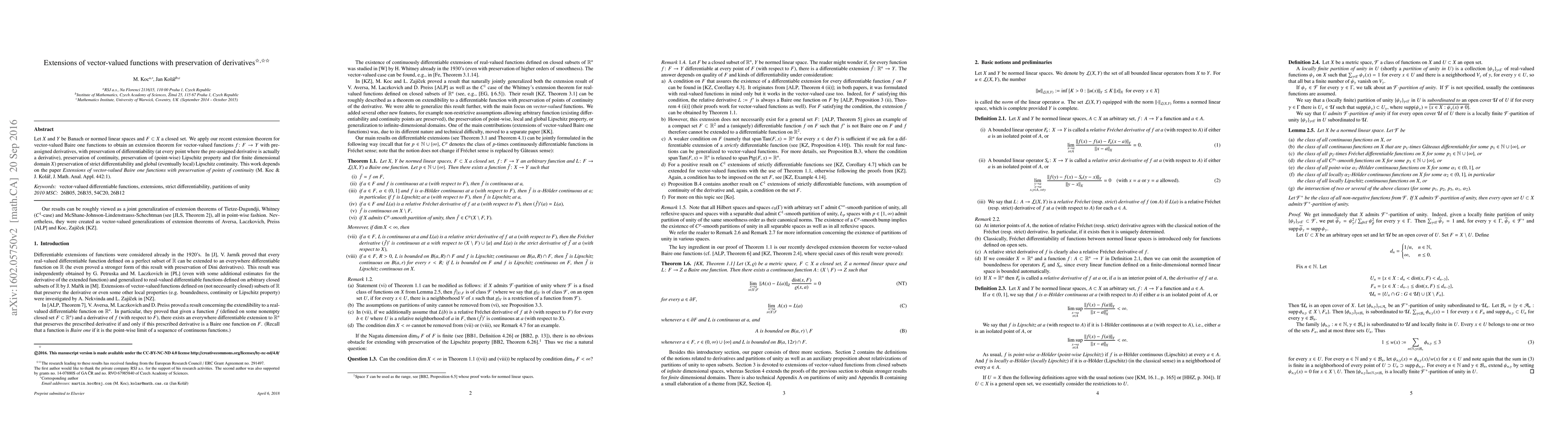 This paper extends vector-valued functions defined on a closed set within Banach or normed spaces, ensuring preservation of derivatives, continuity, Lipschitz properties, and differentiability, particularly in finite-dimensional domains. The extension leverages an earlier theorem for vector-valued Baire one functions.