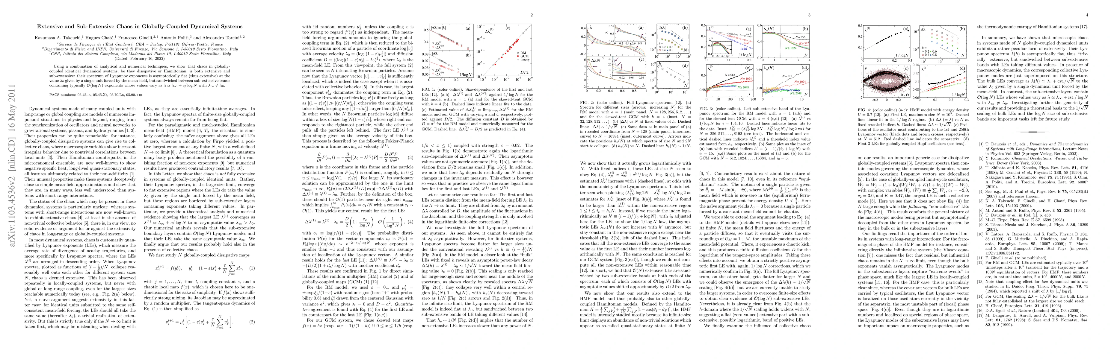 This research paper shows that chaos in globally-coupled dynamical systems has a flat spectrum of Lyapunov exponents at a specific value, but is surrounded by sub-extensive bands with varying exponent values.