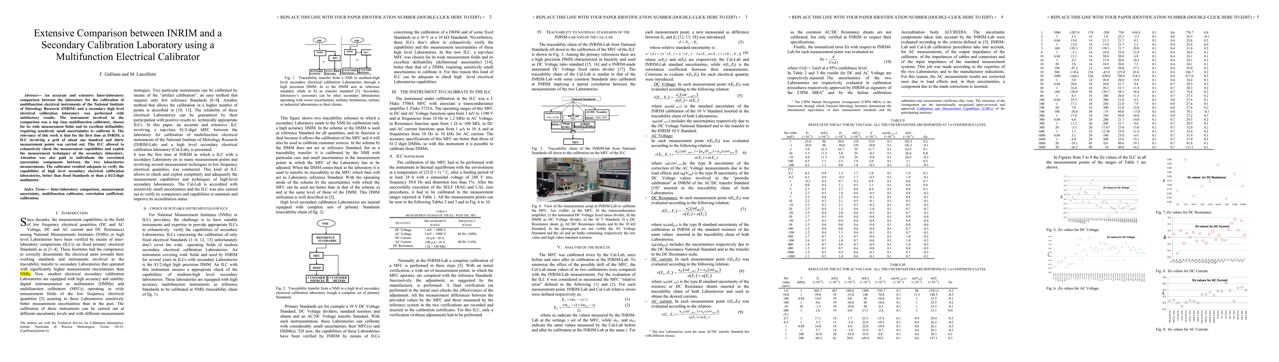 Summary: This study conducted an extensive inter-laboratory comparison between INRIM and a secondary high-level calibration lab using a multifunction electrical calibrator, revealing satisfactory results and identifying correlated uncertainty components. This comparison, involving around 130 measurement points, marks the first extensive ILC at INRIM, validating the calibrator's adequacy for assessing secondary labs' capabilities.