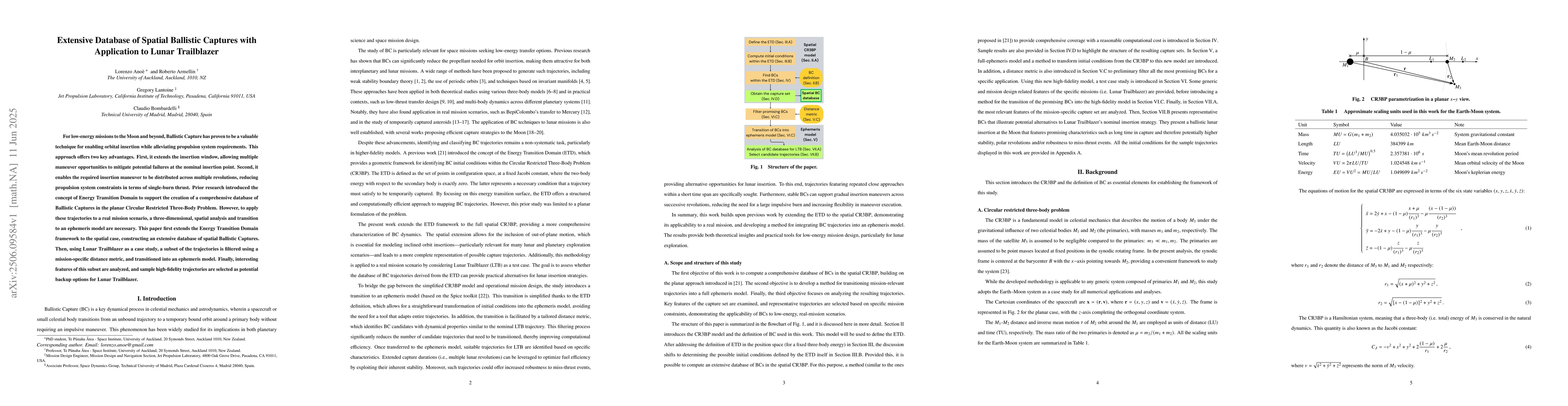 A new database of spatial Ballistic Captures has been created to support low-energy missions to the Moon, allowing for extended insertion windows and reduced propulsion system constraints.