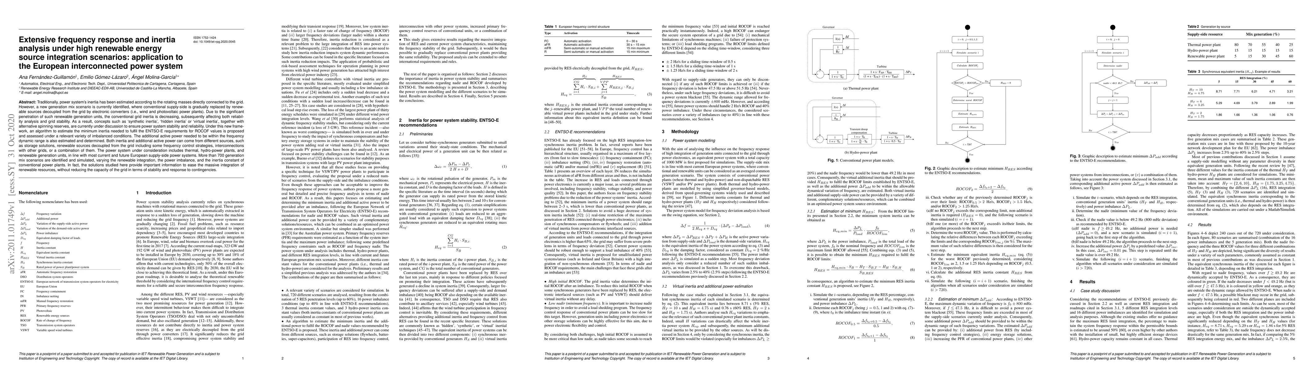 Traditionally, power system's inertia has been estimated according to the rotating masses directly connected to the grid. However, a new generation mix scenario is currently identified, where conventional supply-side is gradually replaced by renewable sources decoupled from the grid by electronic converters (i.e., wind and photovoltaic power plants). Due to the significant penetration of such renewable generation units, the conventional grid inertia is decreasing, subsequently affecting both reliability analysis and grid stability. As a result, concepts such as 'synthetic inertia', 'hidden inertia' or 'virtual inertia', together with alternative spinning reserves, are currently under discussion to ensure power system stability and reliability. Under this new framework, an algorithm to estimate the minimum inertia needed to fulfil the ENTSO-E requirements for ROCOF values is proposed and assessed under a relevant variety of imbalanced conditions. The additional active power needed to be within the frequency dynamic range is also estimated and determined. Both inertia and additional active power can come from different sources, such as storage solutions, renewable sources decoupled from the grid including some frequency control strategies, interconnections with other grids, or a combination of them. The power system under consideration includes thermal, hydro-power plants, and renewable generation units, in line with most current and future European supply-side power systems. More than 700 generation mix scenarios are identified and simulated, varying the renewable integration, the power imbalance, and the inertia constant of conventional power plants. In fact, the solutions studied here provide important information to ease the massive integration of renewable resources, without reducing the capacity of the grid in terms of stability and response to contingencies.