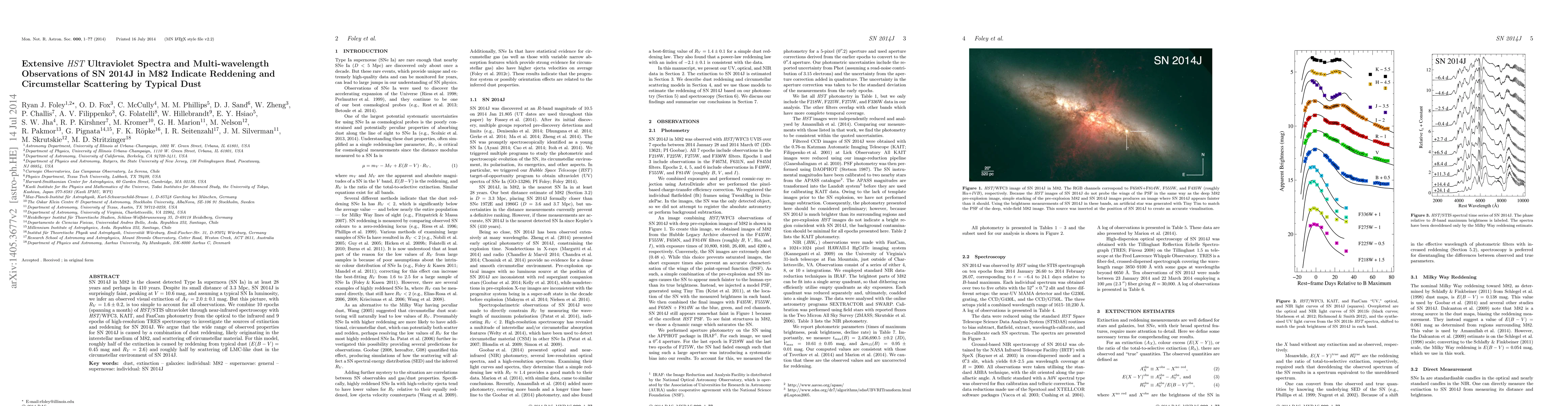 The research investigates the faint Type Ia supernova SN 2014J in M82, finding it exhibits significant reddening and scattering effects. The study combines extensive HST and ground-based observations to conclude that the observed properties are due to a mix of interstellar medium dust and circumstellar material, with roughly equal contributions from typical and LMC-like dust.