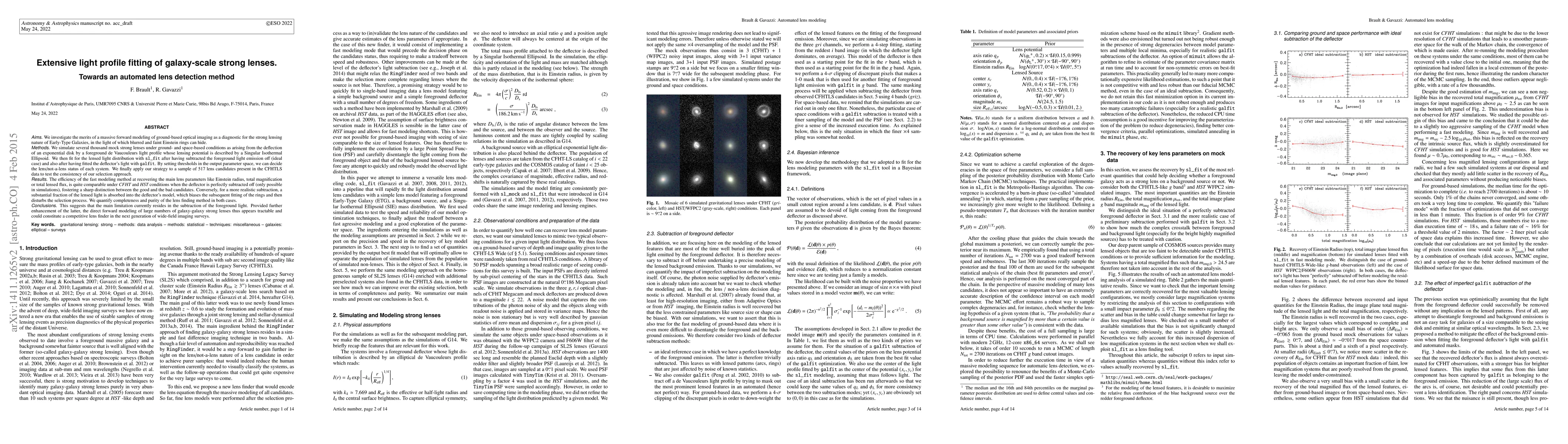 A new method for identifying galaxy-scale strong lenses uses forward modeling to subtract foreground light and fit the remaining lensed light distribution. This approach shows promise as a competitive lens finder in future surveys, but its efficiency is limited by foreground light subtraction.
