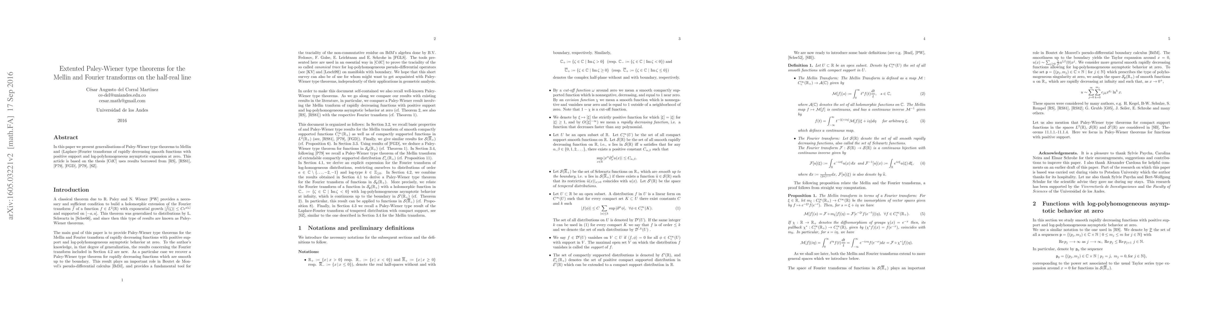 This paper generalizes Paley-Wiener type theorems for Mellin and Fourier transforms applied to rapidly decreasing smooth functions with positive support, incorporating log-polyhomogeneous asymptotics at zero. The work builds on previous results from multiple sources.