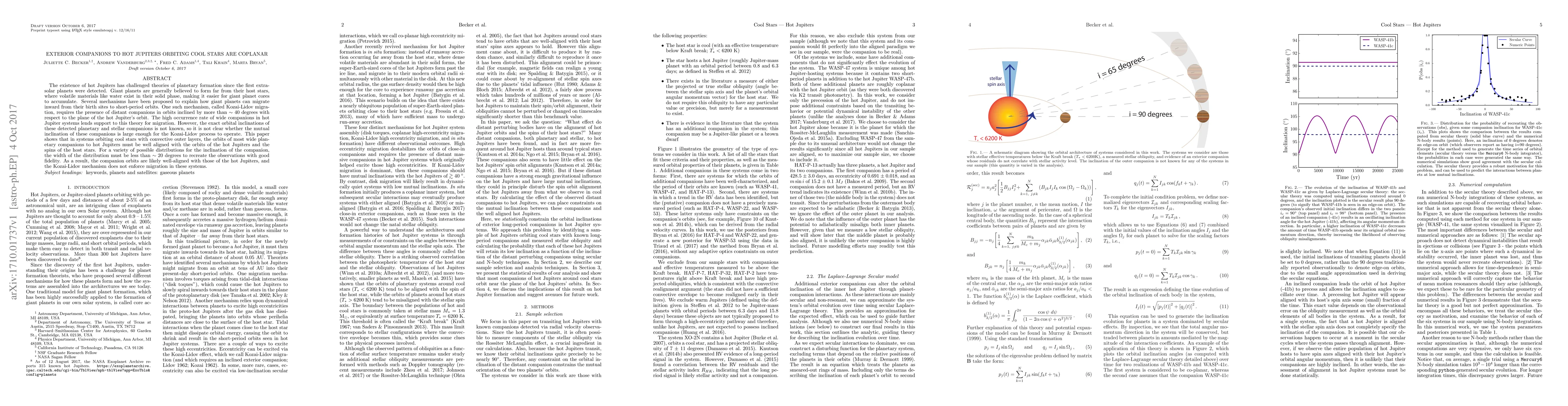 This paper demonstrates that wide planetary companions to hot Jupiters orbiting cool stars are coplanar with the hot Jupiters' orbits and the stars' spins, suggesting that the Kozai-Lidov migration mechanism is unlikely to operate in these systems. The findings indicate that the inclinations of these companions must be less than 20 degrees to align with observed data.