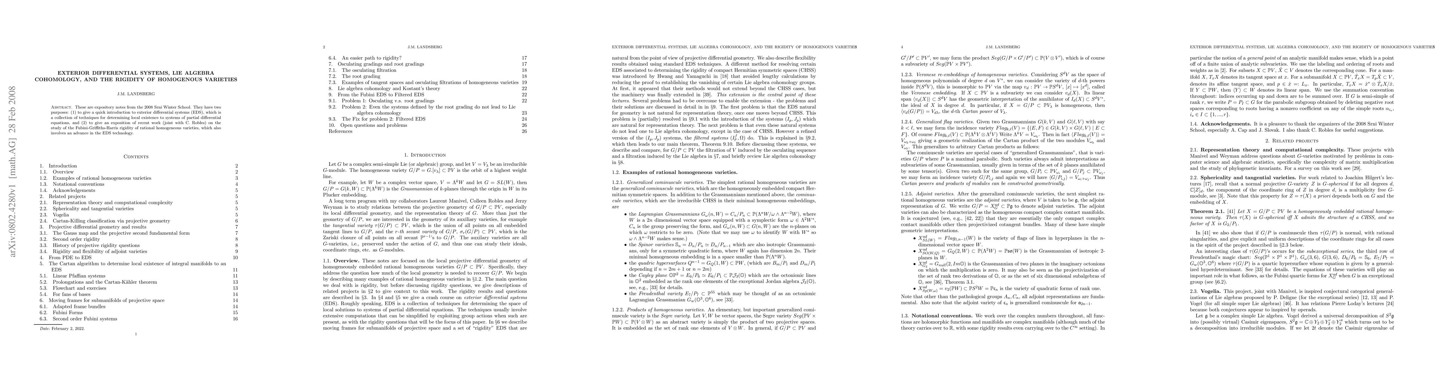 These are expository notes from the 2008 Srni Winter School. They have two purposes: (1) to give a quick introduction to exterior differential systems (EDS), which is a collection of techniques for determining local existence to systems of partial differential equations, and (2) to give an exposition of recent work (joint with C. Robles) on the study of the Fubini-Griffiths-Harris rigidity of rational homogeneous varieties, which also involves an advance in the EDS technology.