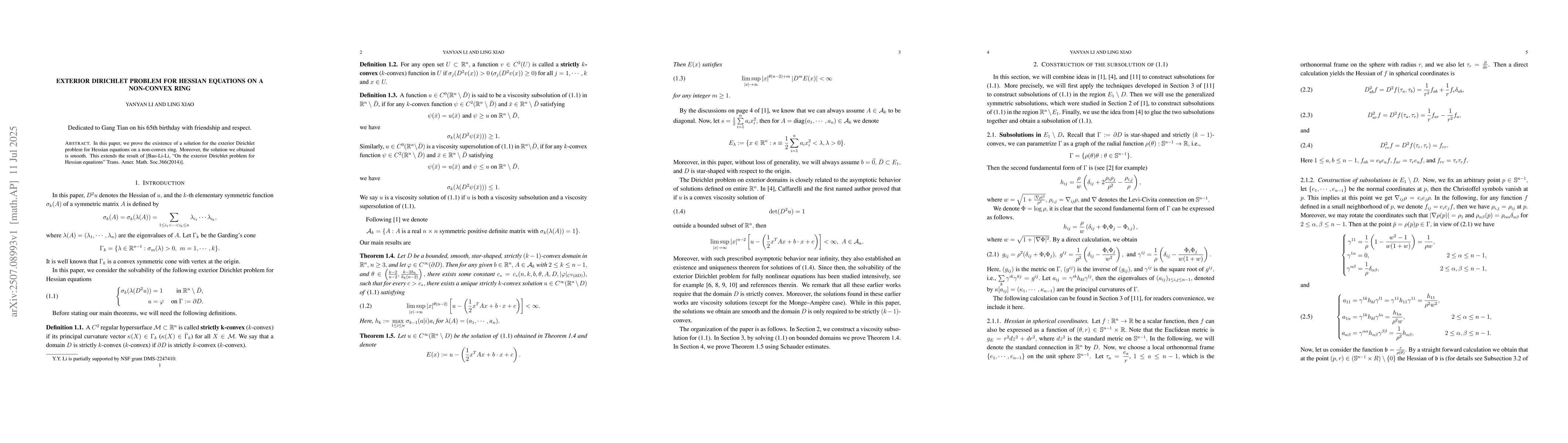 In this paper, we prove the existence of a solution for the exterior Dirichlet problem for Hessian equations on a non-convex ring. Moreover, the solution we obtained is smooth. This extends the result of [Bao-Li-Li, ``On the exterior Dirichlet problem for Hessian equations'' Trans. Amer. Math. Soc.366(2014)].