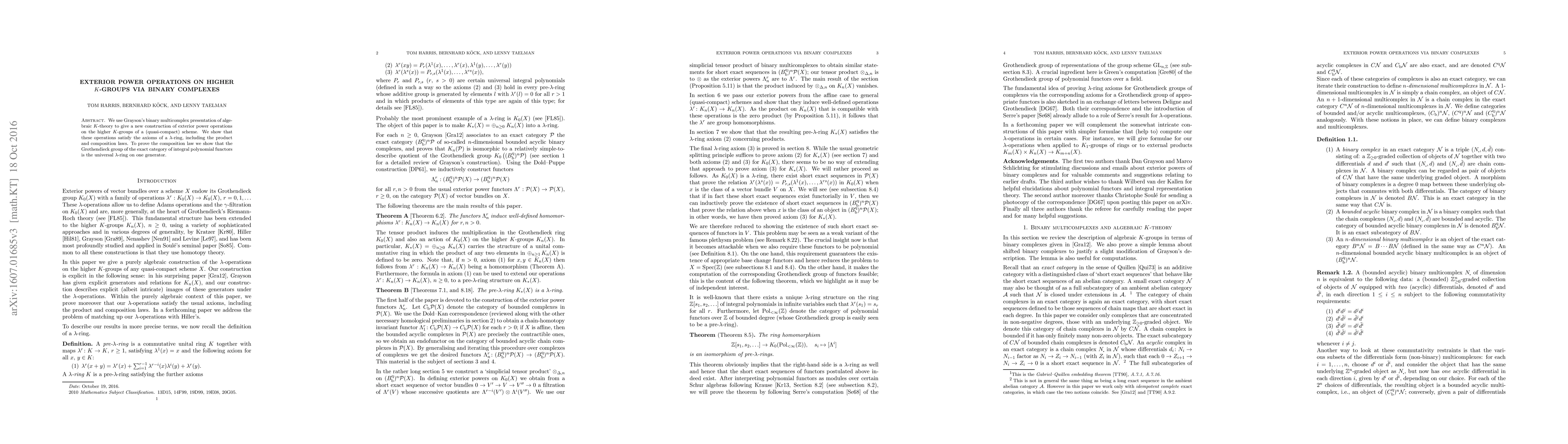 The paper introduces a new construction of exterior power operations on higher K-groups via binary complexes, proving they form a λ-ring and satisfy product and composition laws.
