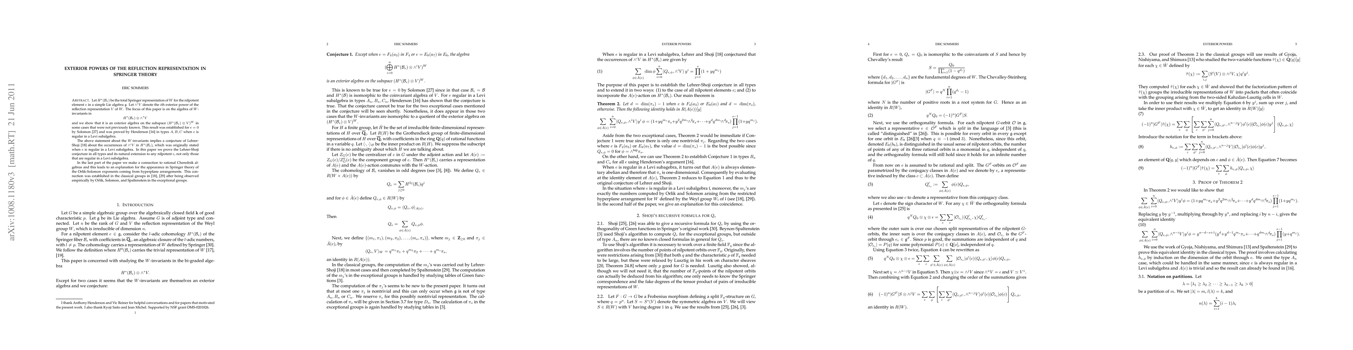 We give a proof of a conjecture of Lehrer and Shoji regarding the occurrences of the exterior powers of the reflection representation in the cohomology of Springer fibers. The actual theorem proved is a slight extension of the original conjecture to all nilpotent orbits and also takes into account the action of the component group. The method is to use Shoji's approach to the orthogonality formulas for Green functions to relate the symmetric algebra to a sum over Green functions. In the second part of the paper we give an explanation of the appearance of the Orlik-Solomon exponents using a result from rational Cherednik algebras.