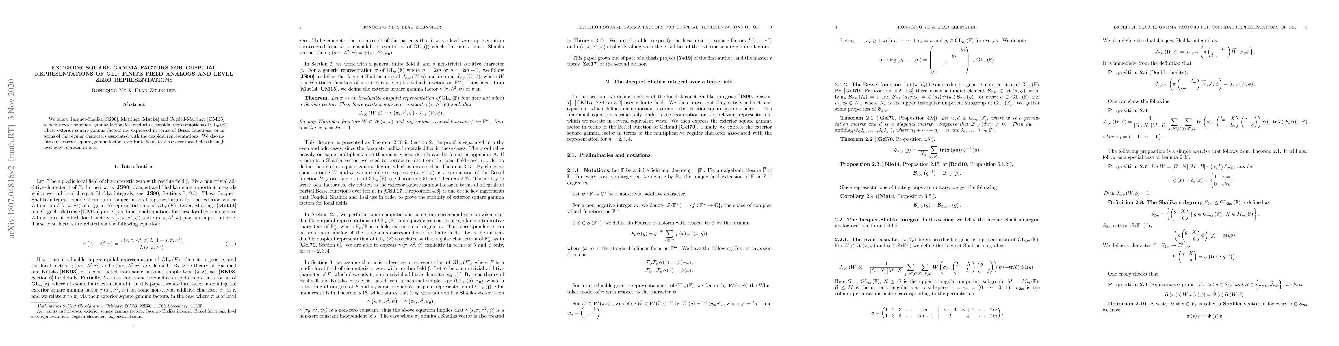 This paper defines exterior square gamma factors for irreducible cuspidal representations of $\mathrm{GL}_n(\mathbb{F}_q)$ and expresses them in terms of Bessel functions or regular characters. It further relates these finite field analogs to local field counterparts via level zero representations.