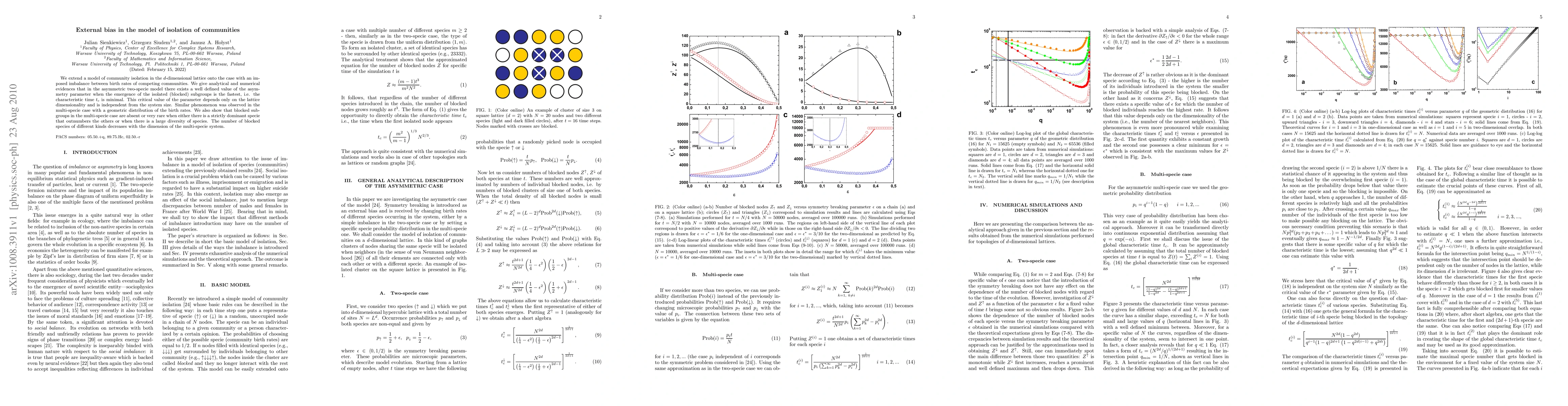 We extend a model of community isolation in the d-dimensional lattice onto the case with an imposed imbalance between birth rates of competing communities. We give analytical and numerical evidences that in the asymmetric two-specie model there exists a well defined value of the asymmetry parameter when the emergence of the isolated (blocked) subgroups is the fastest, i.e. the characteristic time tc is minimal. This critical value of the parameter depends only on the lattice dimensionality and is independent from the system size. Similar phenomenon was observed in the multi-specie case with a geometric distribution of the birth rates. We also show that blocked subgroups in the multi-specie case are absent or very rare when either there is a strictly dominant specie that outnumbers the others or when there is a large diversity of species. The number of blocked species of different kinds decreases with the dimension of the multi-specie system.