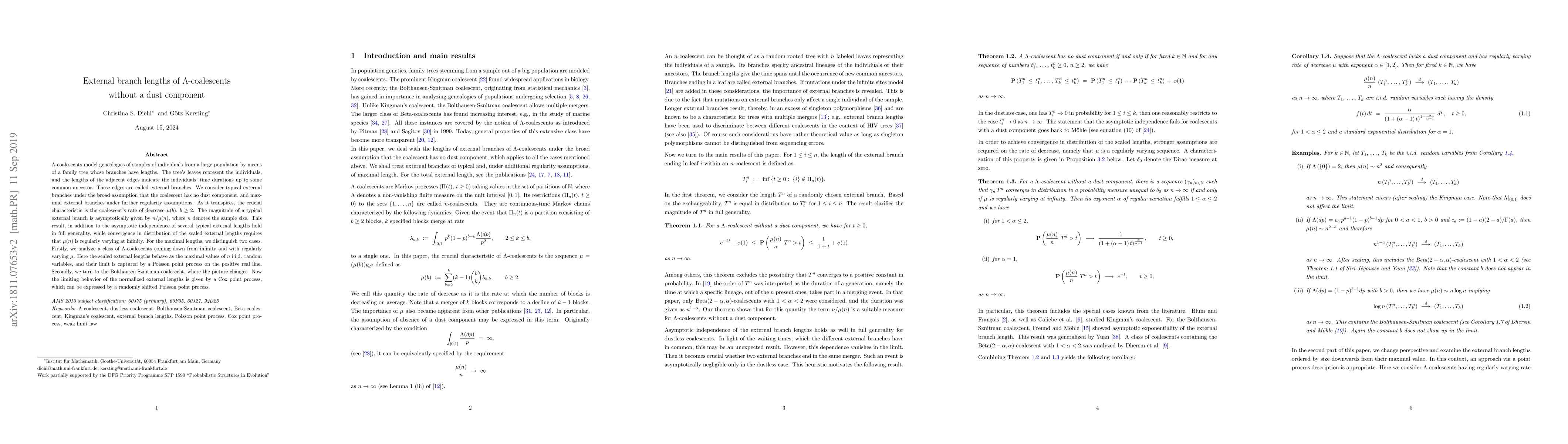$\Lambda$-coalescents model genealogies of samples of individuals from a large population by means of a family tree whose branches have lengths. The tree's leaves represent the individuals, and the lengths of the adjacent edges indicate the individuals' time durations up to some common ancestor. These edges are called external branches. We consider typical external branches under the broad assumption that the coalescent has no dust component, and maximal external branches under further regularity assumptions. As it transpires, the crucial characteristic is the coalescent's rate of decrease $\mu(b)$, $b\geq 2$. The magnitude of a typical external branch is asymptotically given by $n/\mu(n)$, where $n$ denotes the sample size. This result, in addition to the asymptotic independence of several typical external lengths hold in full generality, while convergence in distribution of the scaled external lengths requires that $\mu(n)$ is regularly varying at infinity. For the maximal lengths, we distinguish two cases. Firstly, we analyze a class of $\Lambda$-coalescents coming down from infinity and with regularly varying $\mu$. Here the scaled external lengths behave as the maximal values of $n$ i.i.d. random variables, and their limit is captured by a Poisson point process on the positive real line. Secondly, we turn to the Bolthausen-Sznitman coalescent, where the picture changes. Now the limiting behavior of the normalized external lengths is given by a Cox point process, which can be expressed by a randomly shifted Poisson point process.