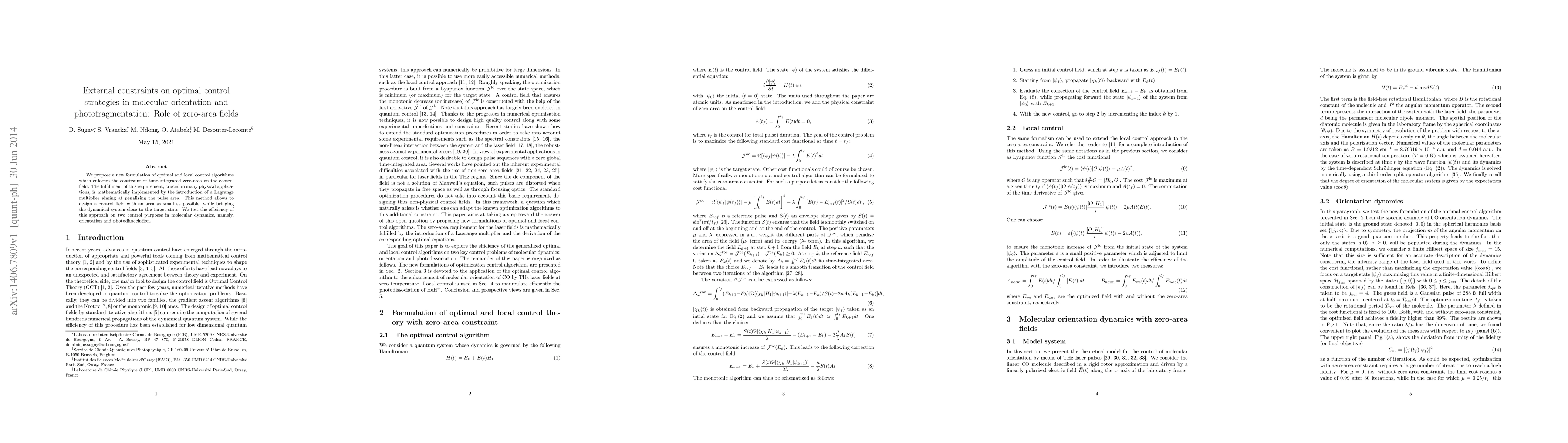 We propose a new formulation of optimal and local control algorithms which enforces the constraint of time-integrated zero-area on the control field. The fulfillment of this requirement, crucial in many physical applications, is mathematically implemented by the introduction of a Lagrange multiplier aiming at penalizing the pulse area. This method allows to design a control field with an area as small as possible, while bringing the dynamical system close to the target state. We test the efficiency of this approach on two control purposes in molecular dynamics, namely, orientation and photodissociation.